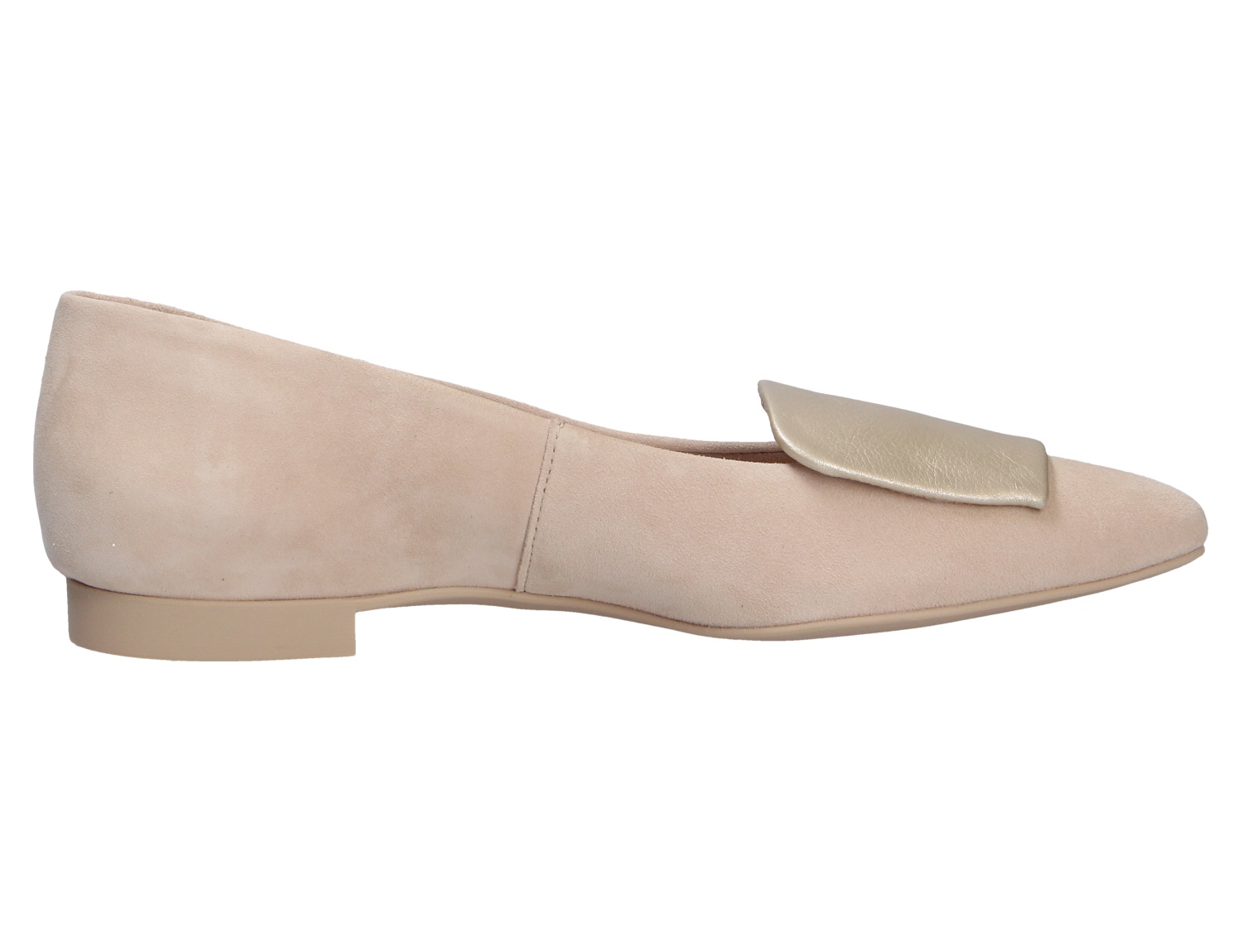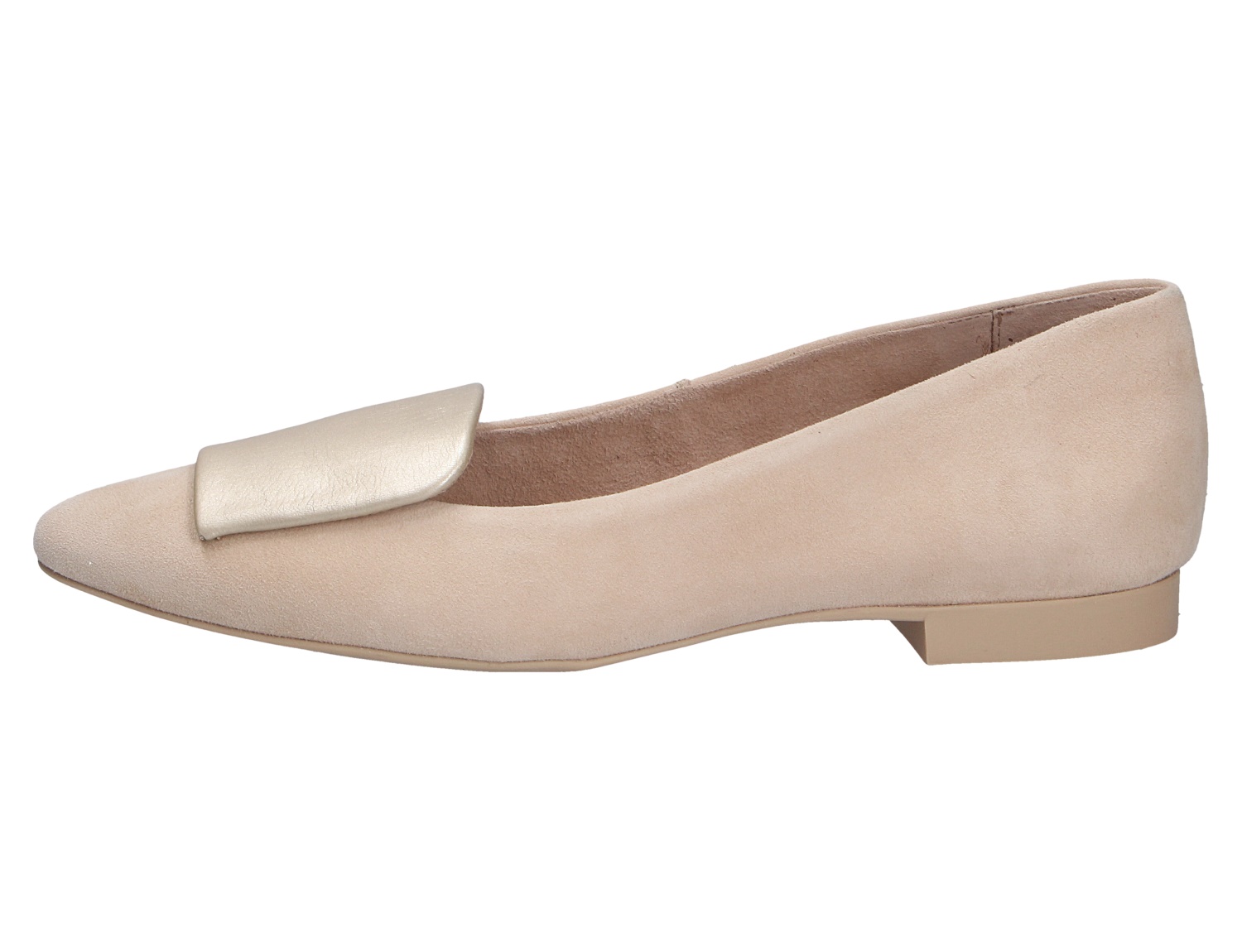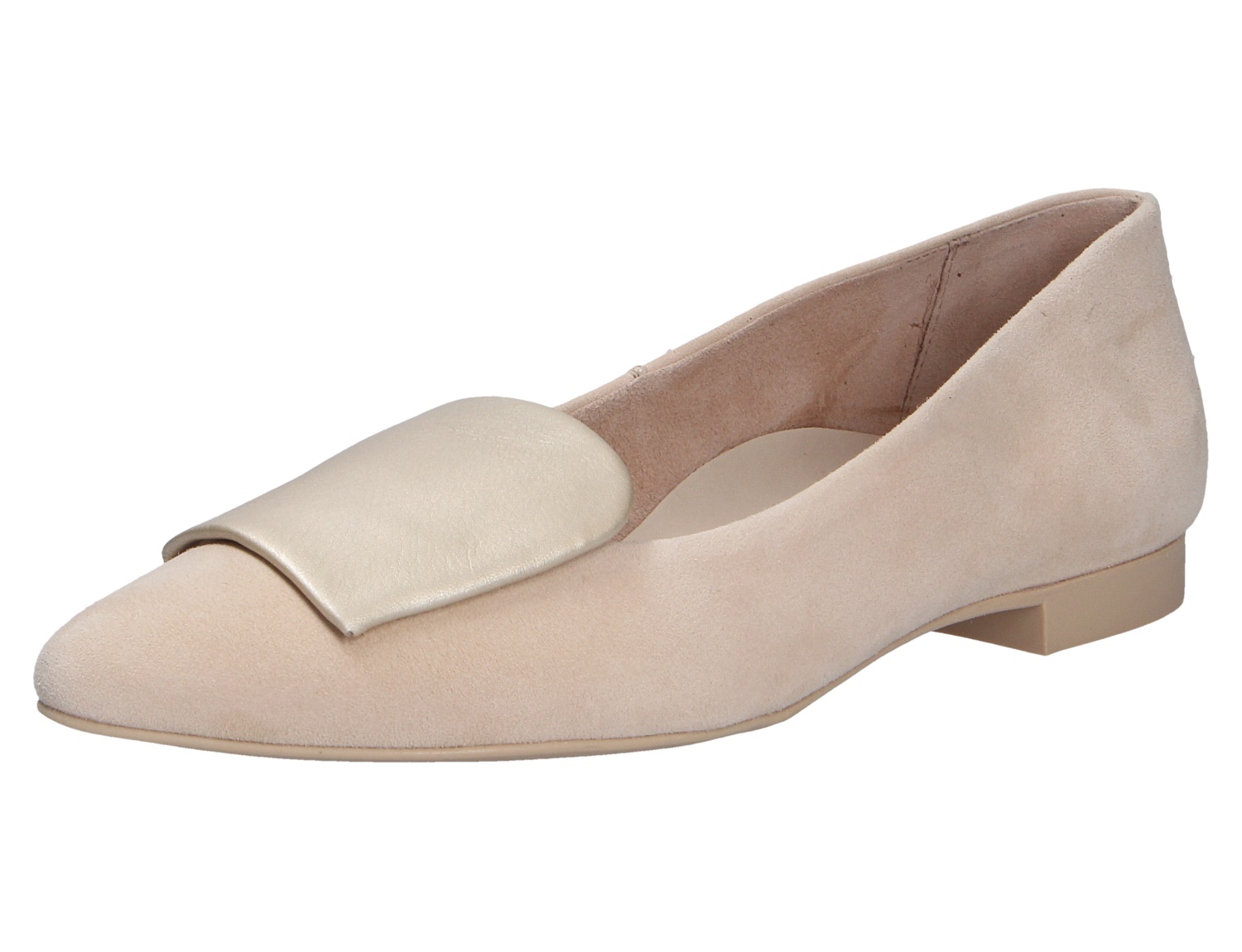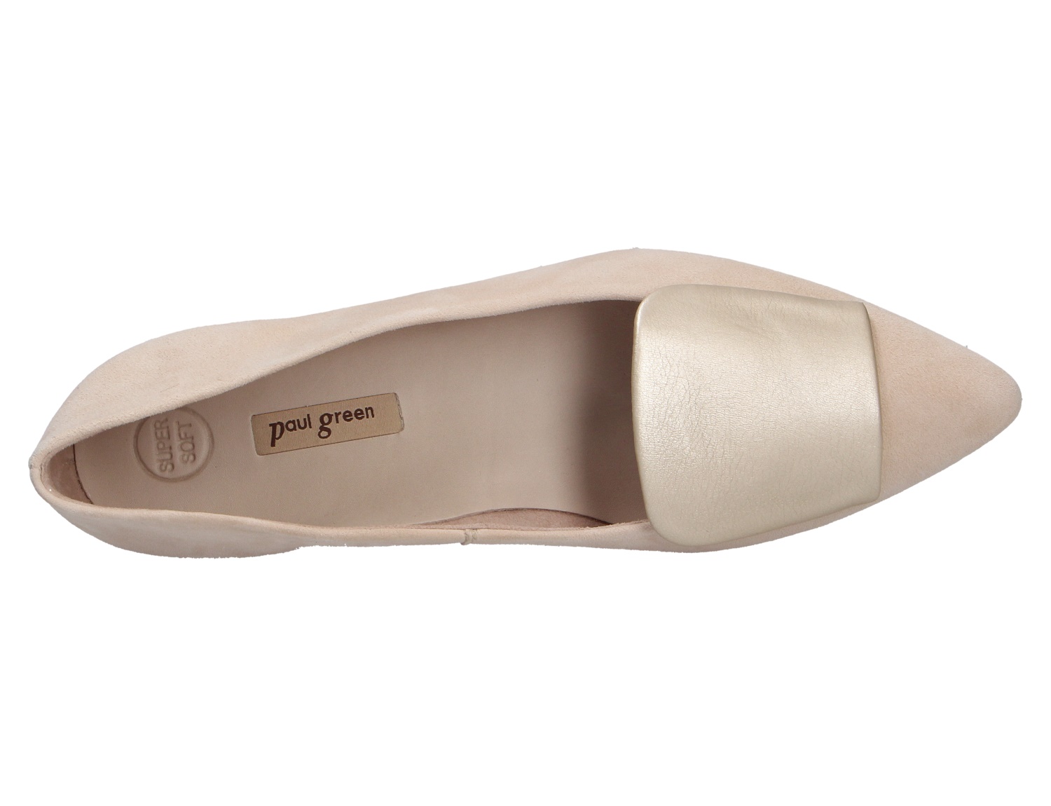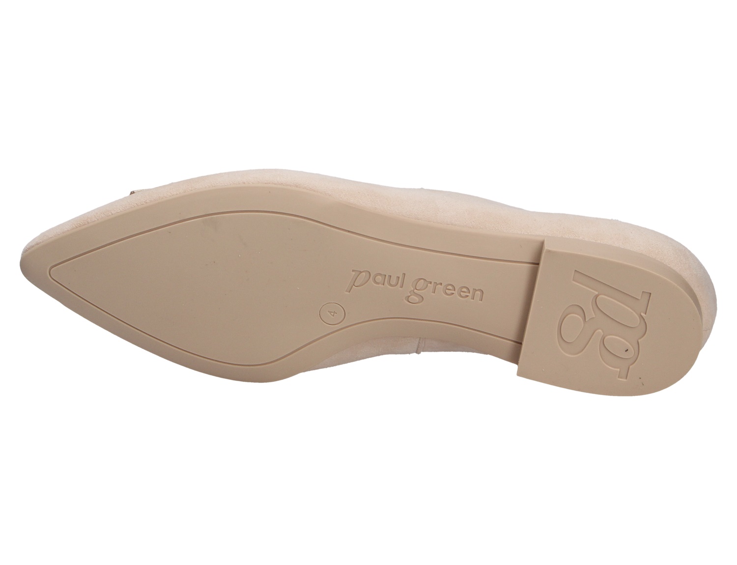 Schöne Damen Ballerina von Paul Green aus einem weichen Veloursleder.Diese Leder hat eine samtartige Oberfläche, ist sehr weiches und atmungsaktiv. Das exzellente Innenleben aus bestem Leder gibt Ihnen ein erholsames Gefühl an langen Tagen. Für gutes Fußklima sorgt die lederbezogene Decksohle. Geschnitten ist die Form für normal breite Füße (Weite F). Der stabile Blockabsatz hat eine Höhe von cirka 1 cm ,für gute Bodenhaftung sorgt die abriebfeste und griffige Gummisohle. Die spitze Form verleiht dem Schuh einen modischen, aktuellen Look. Der Schuh sieht dadurch schmaler und gleichzeitig elegant aus. Die Schuhgröße fällt regulär aus. Der Name Paul Green steht für Damenschuhe von höchster Qualität, gefertigt in Europa mit handwerklichem Können und Leidenschaft. Paul Green wurde 1988 in München gegründet und ist heute in Mattsee bei Salzburg in Österreich zu Hause.