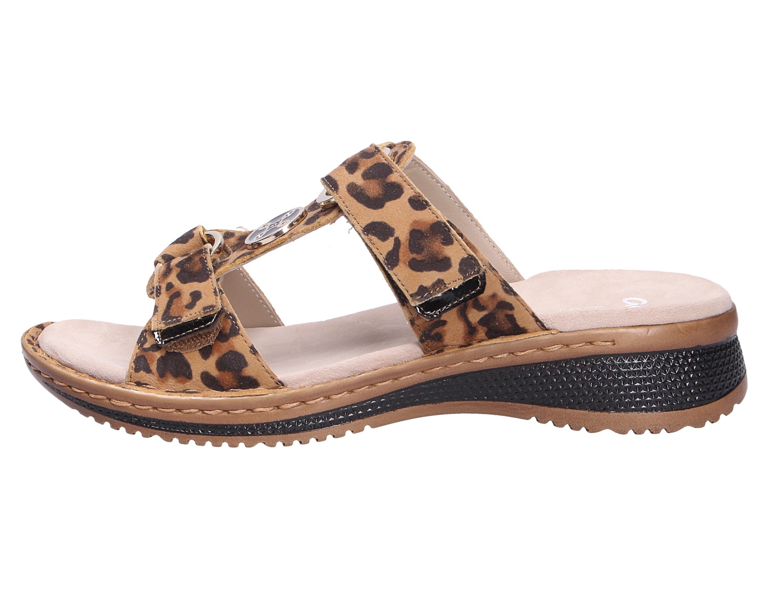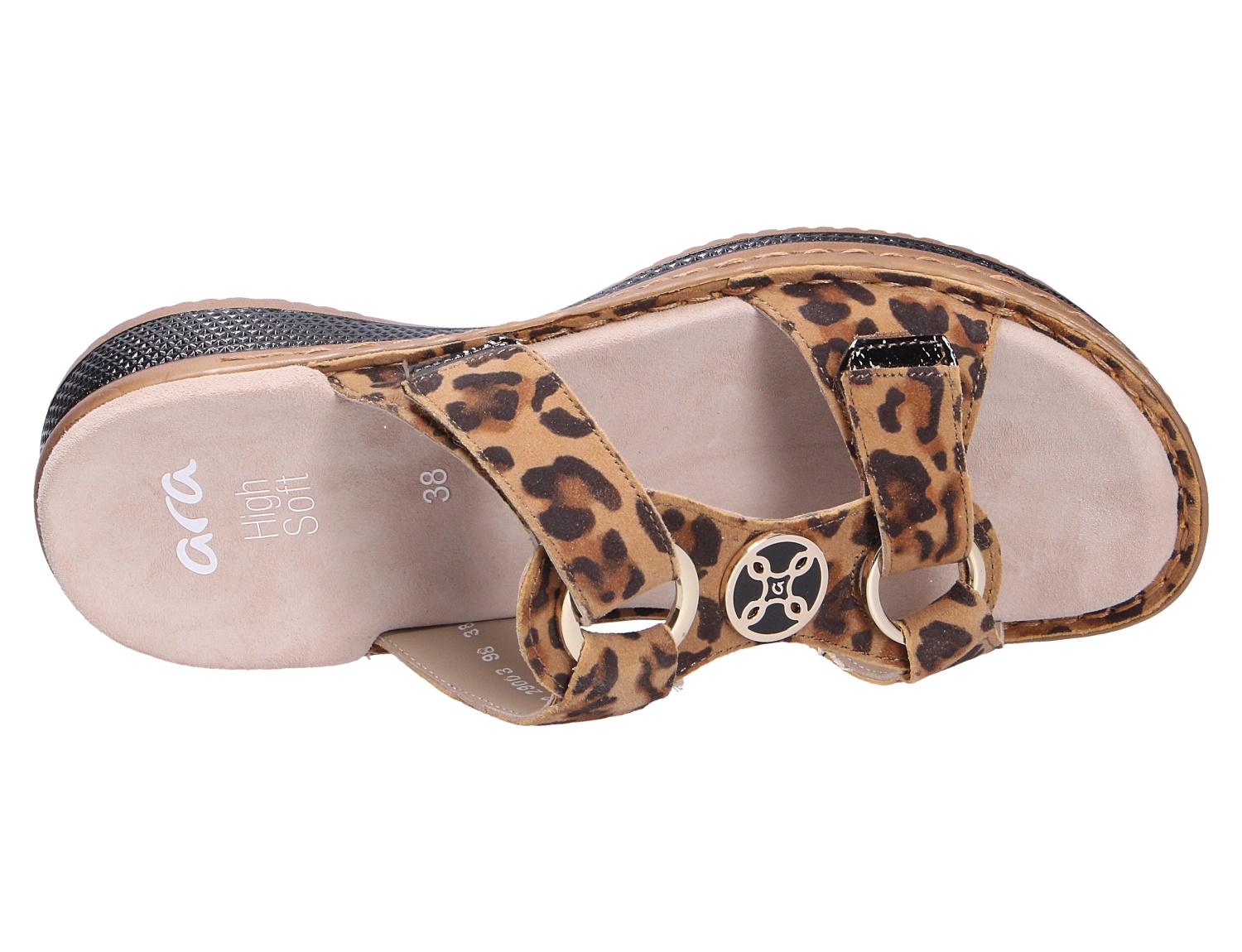 Luftig leichtes gehen mit Comfort die Pantolette HAWAII von Ara Hier wird jeder Fuß verwöhnt. Durch das hochwertige Nubukleder ist das Obermaterial wunderbar anpassungsfähig. Die angeraute Oberfläche ist besonders weich und angenehm zu tragen. Ebenso glänzt das Modell durch eine weiche Lederausstattung. Das Fußbett(nicht auswechselbar)ist mit Leder bezogen und sorgt für ein angenehmes Fußklima. Für etwas breite Füße ist dieses Modell(weite G) genau das richtige. Der stabile Blockabsatz hat eine Höhe von cirka 2 cm ,als Sohlenmaterial kommt ein griffiges und abriebarmes Gummi zum Einsatz. Klettverschlüsse halten den Schuh sicher am Fuß und sorgen auch für die individuelle und optimale Anpassung. Die Schuhgröße fällt regulär aus.