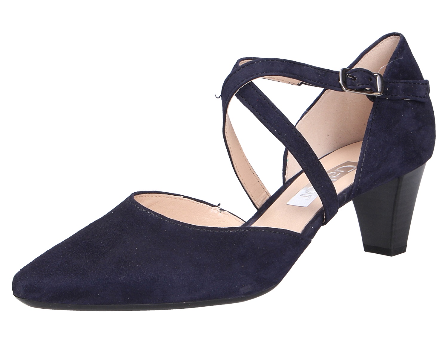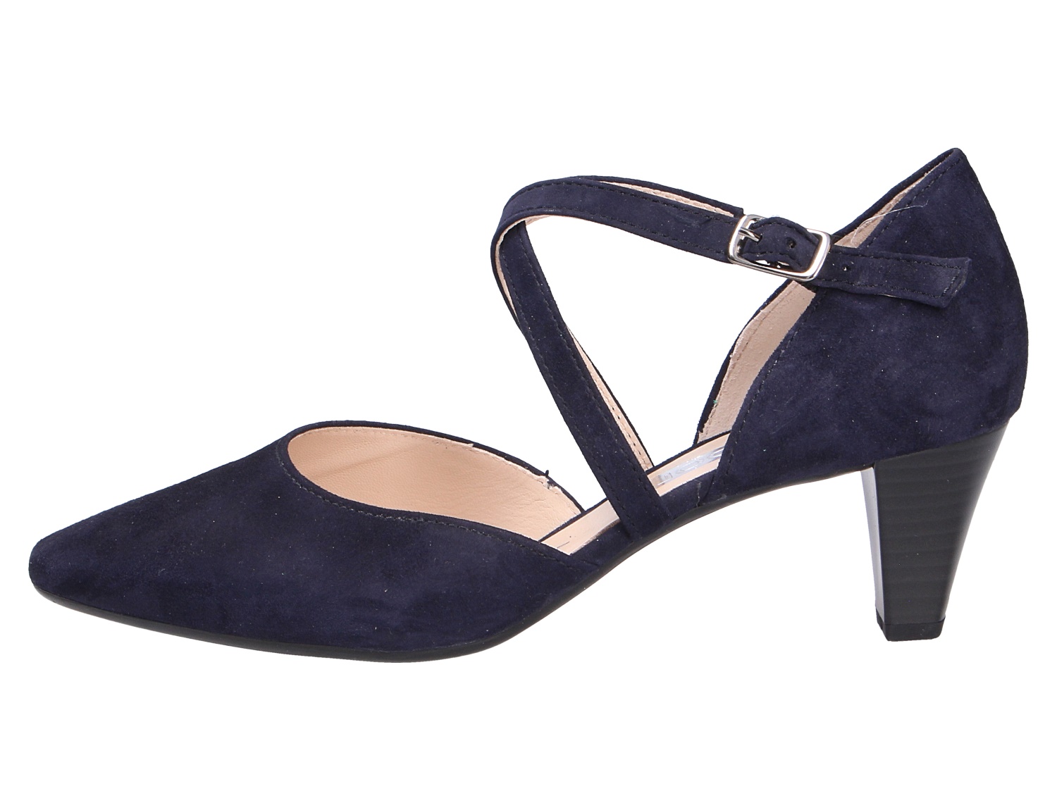 Chicer Damen Pumps der Marke Gabor aus einem weichen Veloursleder.Diese Leder hat eine samtartige Oberfläche, ist sehr weiches und atmungsaktiv. Das exzellente Innenleben aus bestem Leder gibt Ihnen ein erholsames Gefühl an langen Tagen. Für gutes Fußklima sorgt die lederbezogene Decksohle. Geschnitten ist die Form für normal breite Füße (Weite F). Der Trichterabsatz hat eine Höhe von cirka 5 cm ,für gute Bodenhaftung sorgt die abriebfeste und griffige Gummisohle. Anpassen an jede Fußform ist mit einer variablen Schnalle bequem möglich. Die spitze Form verleiht dem Schuh einen modischen, aktuellen Look. Der Schuh sieht dadurch schmaler und gleichzeitig elegant aus. Die Schuhgröße fällt regulär aus. GABOR ist führender Hersteller qualitativ hochwertiger, modischer Damenschuhe. Neben modischer Aktualität sind Passform und Verarbeitungsqualität die wesentlichen Merkmale des GABOR Markenschuhs.Die langjährige Erfahrung ist die Grundlage dessen, was das Unternehmen als Gabor-Qualität bezeichnet. Nur höchste Ansprüche an jedes Paar Schuhe haben Gabor zur Traditionsmarke werden lassen.