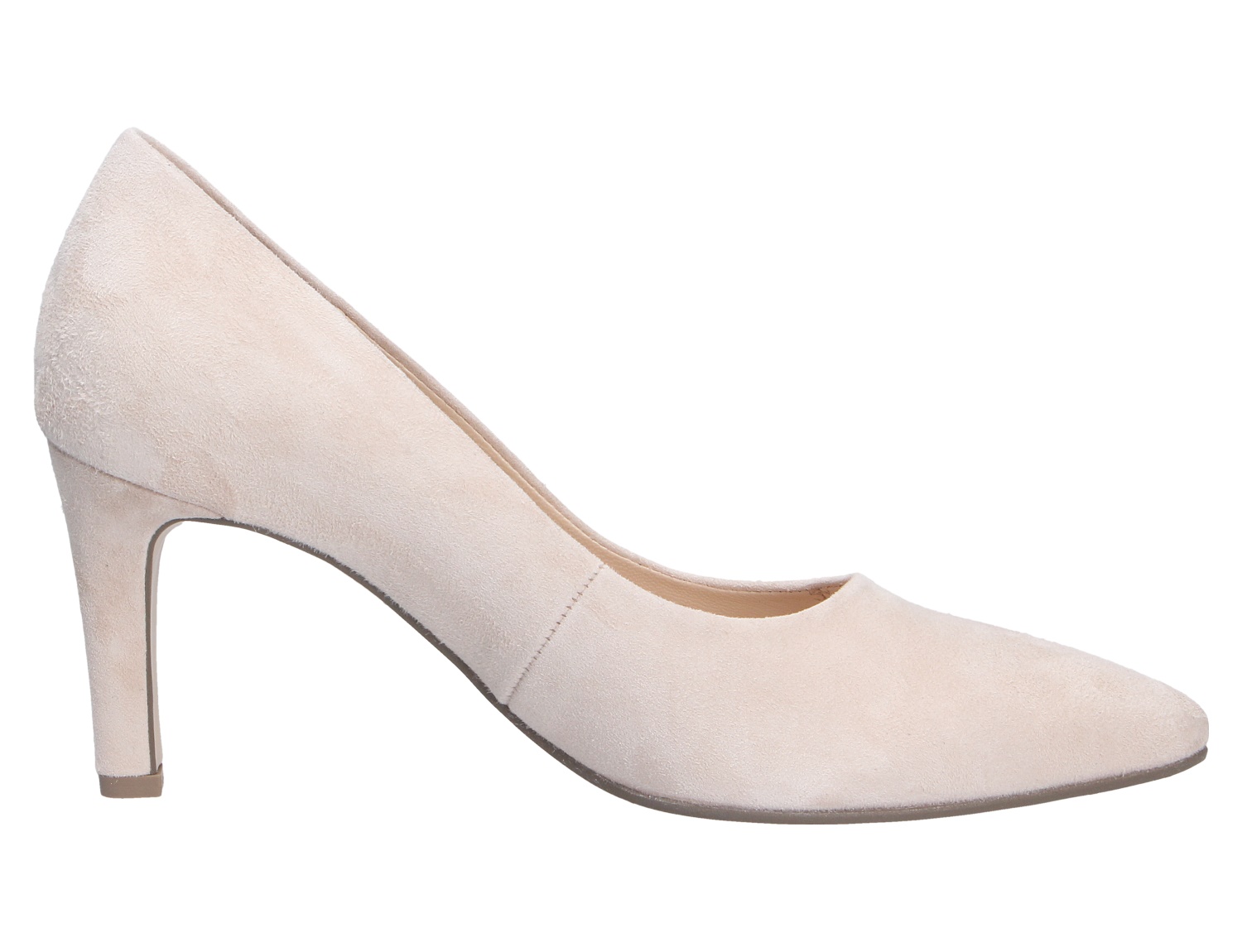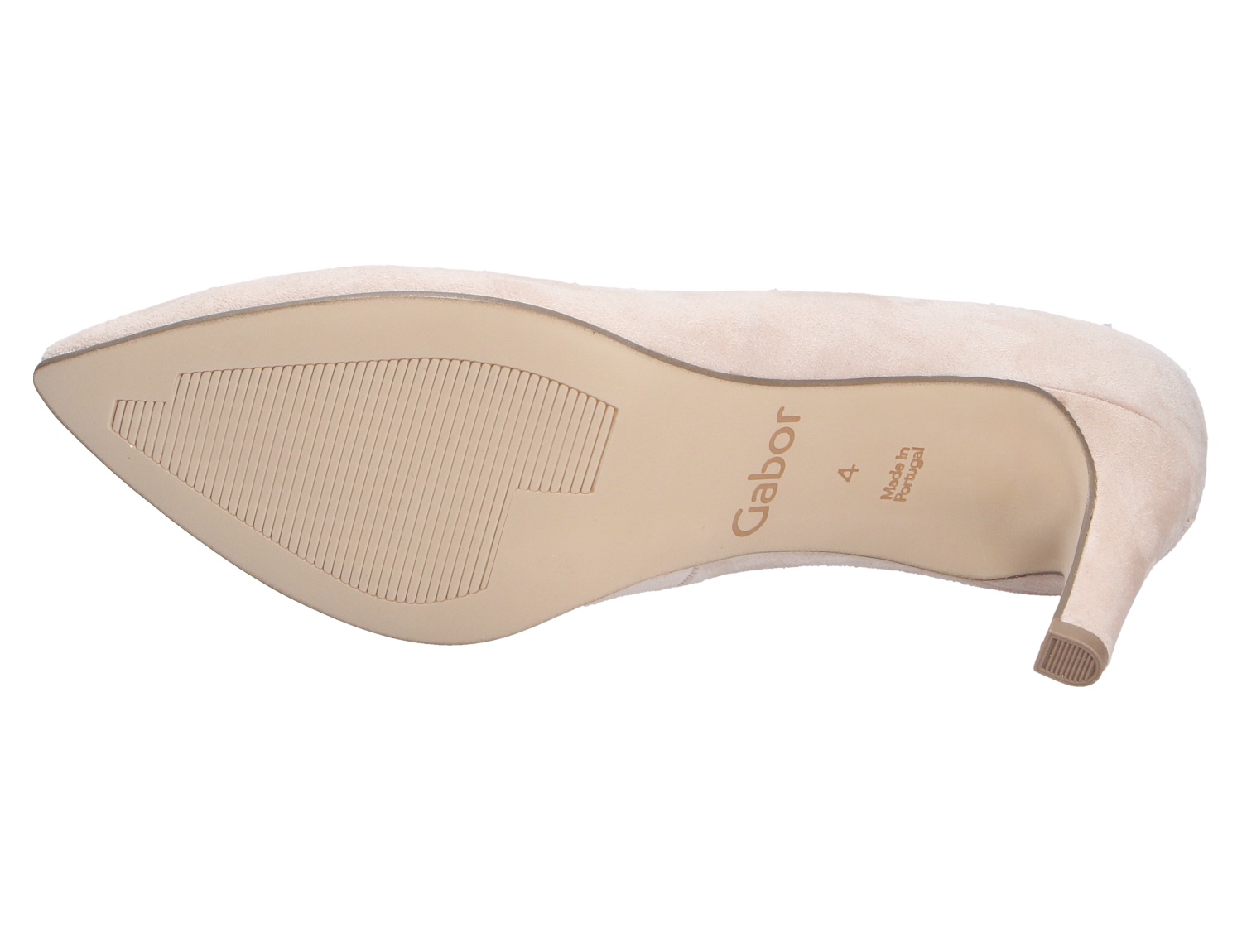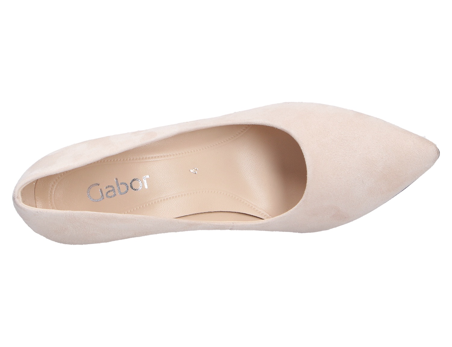 Chicer Damen Pumps aus dem Hause Gabor aus einem weichen Veloursleder.Diese Leder hat eine samtartige Oberfläche, ist sehr weiches und atmungsaktiv. Ebenso glänzt das Modell durch eine weiche Lederausstattung. Das Fußbett(nicht auswechselbar)ist mit Leder bezogen und sorgt für ein angenehmes Fußklima. Die Schuhform ist ideal für normal weite Füße (Weite F). Der Trichterabsatz hat eine Höhe von cirka 6 cm ,die aus einem feinen Tunit-Material bestehende Laufsohle hat eine lederähnliche Optik ist aber deutlich abriebfester. Die spitze Form verleiht dem Schuh einen modischen, aktuellen Look. Der Schuh sieht dadurch schmaler und gleichzeitig elegant aus. Die Schuhgröße fällt regulär aus. GABOR ist führender Hersteller qualitativ hochwertiger, modischer Damenschuhe. Neben modischer Aktualität sind Passform und Verarbeitungsqualität die wesentlichen Merkmale des GABOR Markenschuhs.Die langjährige Erfahrung ist die Grundlage dessen, was das Unternehmen als Gabor-Qualität bezeichnet. Nur höchste Ansprüche an jedes Paar Schuhe haben Gabor zur Traditionsmarke werden lassen.