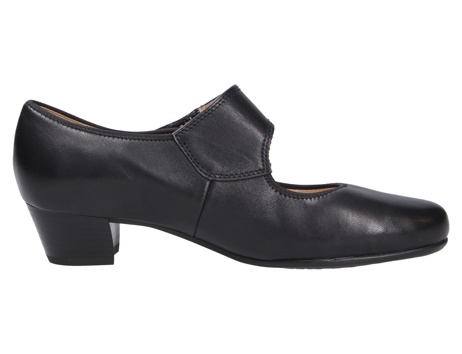 Bequemer Damenschuh der Marke Ara aus einem feinen hochwertigem Glattleder.Dieses Leder verleiht einen edlen Look und ist gut zu pflegen. Das exzellente Innenleben aus bestem Leder gibt Ihnen ein erholsames Gefühl an langen Tagen. Für gutes Fußklima sorgt die lederbezogene Decksohle. Der Schnitt ist für breitere Füße (Weite H) geeignet. Der stabile Blockabsatz hat eine Höhe von cirka 4 cm ,für gute Bodenhaftung sorgt die abriebfeste und griffige Gummisohle. Ein Klettverschluß zum einfachen und bequemen an- und ausziehen sorgt für einen guten Halt.Ebenfalls ist eine stufenlose Anpassung an den Fuß möglich. Durch die runde Schuhspitze wirkt der Schuh dezent am Fuß und bietet genügend Platz für die Fußzehen. Die Schuhgröße fällt regulär aus.
