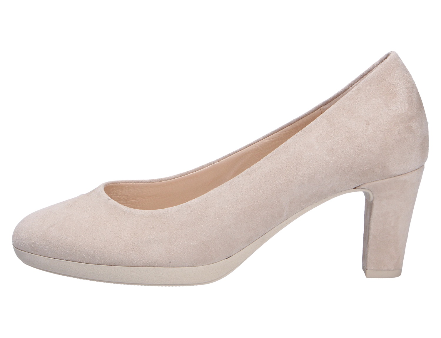 Chicer Damen Pumps aus dem Hause Gabor aus einem weichen Veloursleder.Diese Leder hat eine samtartige Oberfläche, ist sehr weiches und atmungsaktiv. Das exzellente Innenleben aus bestem Leder gibt Ihnen ein erholsames Gefühl an langen Tagen. Für gutes Fußklima sorgt die lederbezogene Decksohle. Geschnitten ist die Form für normal breite Füße (Weite F). Der Trichterabsatz hat eine Höhe von cirka 5 cm ,für gute Bodenhaftung sorgt die abriebfeste und griffige Gummisohle. Durch die runde Schuhspitze wirkt der Schuh dezent am Fuß und bietet genügend Platz für die Fußzehen. Die Schuhgröße fällt regulär aus. GABOR ist führender Hersteller qualitativ hochwertiger, modischer Damenschuhe. Neben modischer Aktualität sind Passform und Verarbeitungsqualität die wesentlichen Merkmale des GABOR Markenschuhs.Die langjährige Erfahrung ist die Grundlage dessen, was das Unternehmen als Gabor-Qualität bezeichnet. Nur höchste Ansprüche an jedes Paar Schuhe haben Gabor zur Traditionsmarke werden lassen.