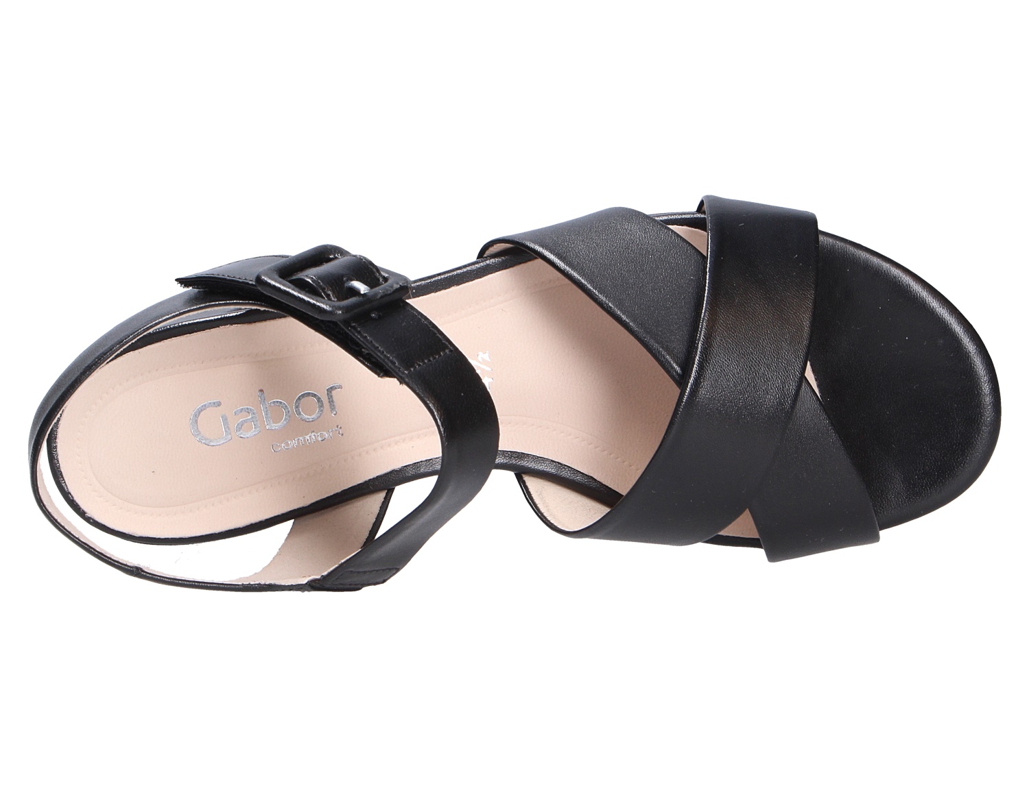 Schöne Damen Sandale aus dem Hause Gabor aus einem feinen hochwertigem Glattleder.Dieses Leder verleiht einen edlen Look und ist gut zu pflegen. Das exzellente Innenleben aus bestem Leder gibt Ihnen ein erholsames Gefühl an langen Tagen. Für gutes Fußklima sorgt die lederbezogene Decksohle. Geschnitten ist der Schuh für etwas breitere Füße (Weite G). Der stabile Blockabsatz hat eine Höhe von cirka 5 cm ,für gute Bodenhaftung sorgt die abriebfeste und griffige Gummisohle. Über eine Schließe läßt sich der Schuh bequem an- und ausziehen. Die Schuhgröße fällt regulär aus. GABOR ist führender Hersteller qualitativ hochwertiger, modischer Damenschuhe. Neben modischer Aktualität sind Passform und Verarbeitungsqualität die wesentlichen Merkmale des GABOR Markenschuhs.Die langjährige Erfahrung ist die Grundlage dessen, was das Unternehmen als Gabor-Qualität bezeichnet. Nur höchste Ansprüche an jedes Paar Schuhe haben Gabor zur Traditionsmarke werden lassen.