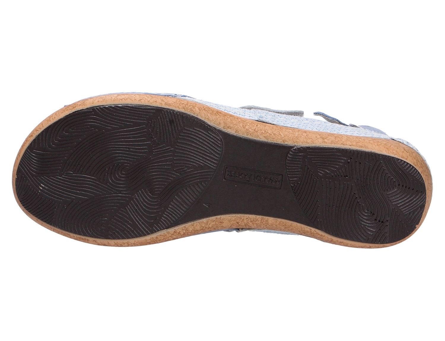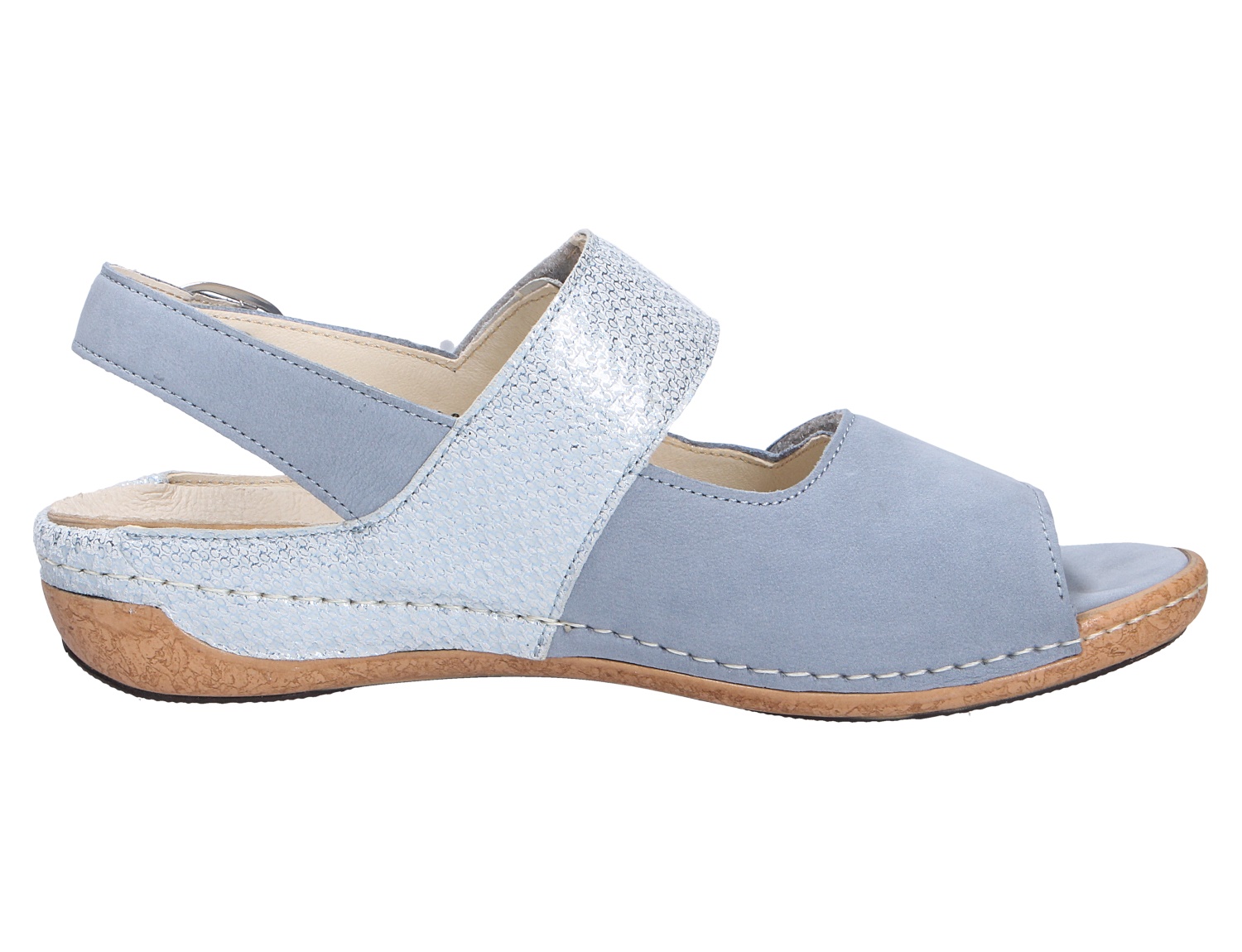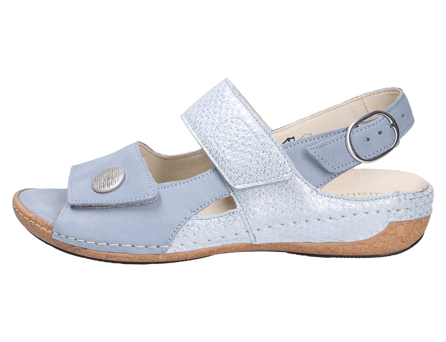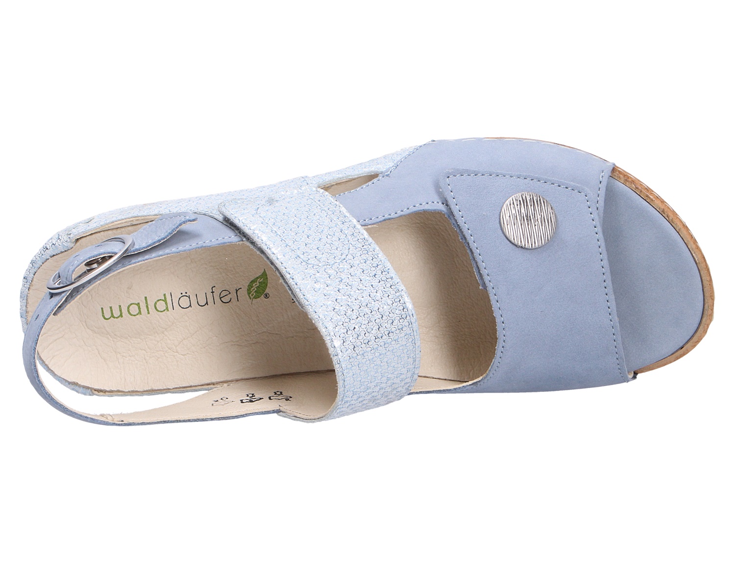 Da freut sich Ihr Fuß: Mit der Sandale DENVER von Waldläufer wird laufen zum Vergnügen. Durch das hochwertige Nubukleder ist das Obermaterial wunderbar anpassungsfähig. Die angeraute Oberfläche ist besonders weich und angenehm zu tragen. Das exzellente Innenleben aus bestem Leder gibt Ihnen ein erholsames Gefühl an langen Tagen. Die lederbezogene, gepolsterte Einlegesohle ist herausnehmbar.Somit können eigene Einlagen verwendet werden. Der Schnitt ist für breitere Füße (Weite H) geeignet. Der Keilabsatz hat eine Höhe von cirka 1 cm ,für gute Bodenhaftung sorgt die abriebfeste und griffige Gummisohle. Klettverschlüsse halten den Schuh sicher am Fuß und sorgen auch für die individuelle und optimale Anpassung. Die Schuhgröße fällt regulär aus.