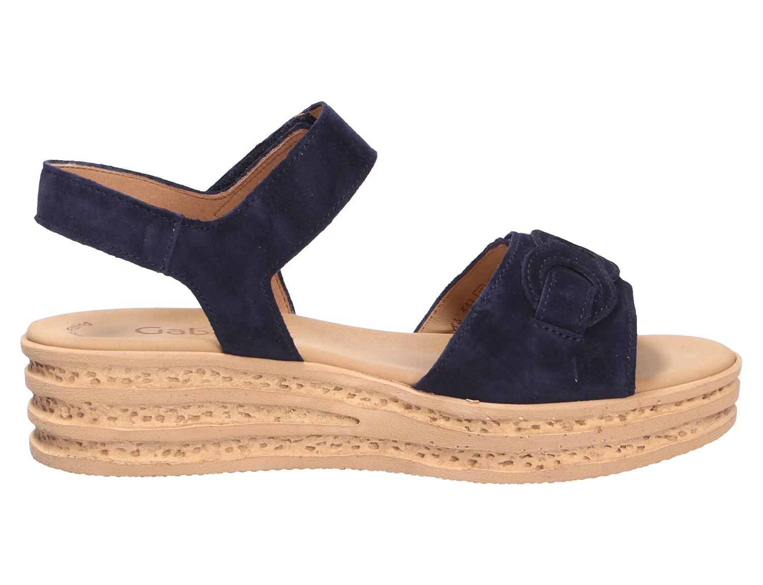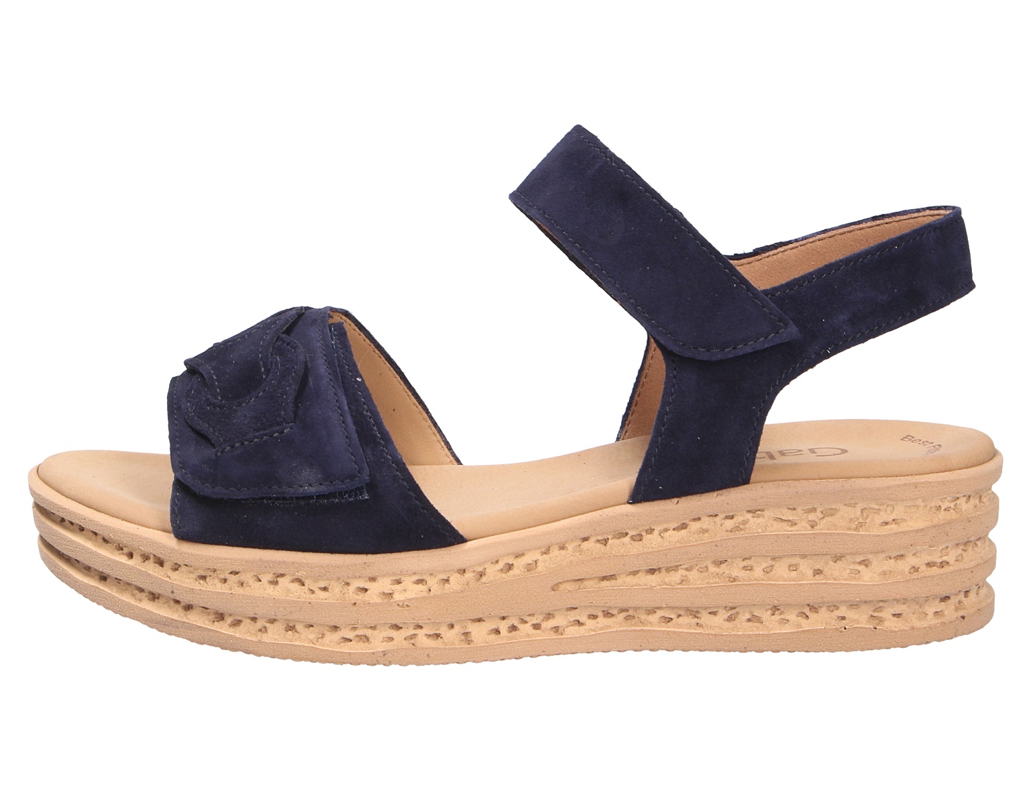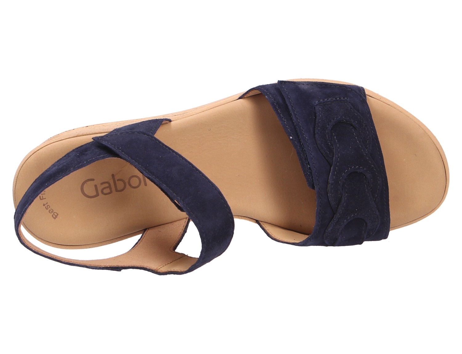 Schöne Damen Sandale der Marke Gabor aus einem weichen Veloursleder.Diese Leder hat eine samtartige Oberfläche, ist sehr weiches und atmungsaktiv. Ebenso glänzt das Modell durch eine weiche Lederausstattung. Das Fußbett(nicht auswechselbar)ist mit Leder bezogen und sorgt für ein angenehmes Fußklima. Die Schuhform ist ideal für normal weite Füße (Weite F). Der Keilabsatz hat eine Höhe von cirka 1 cm ,als Sohlenmaterial kommt ein griffiges und abriebarmes Gummi zum Einsatz. Ein Klettverschluß zum einfachen und bequemen an- und ausziehen sorgt für einen guten Halt.Ebenfalls ist eine stufenlose Anpassung an den Fuß möglich. Die Schuhgröße fällt regulär aus. GABOR ist führender Hersteller qualitativ hochwertiger, modischer Damenschuhe. Neben modischer Aktualität sind Passform und Verarbeitungsqualität die wesentlichen Merkmale des GABOR Markenschuhs.Die langjährige Erfahrung ist die Grundlage dessen, was das Unternehmen als Gabor-Qualität bezeichnet. Nur höchste Ansprüche an jedes Paar Schuhe haben Gabor zur Traditionsmarke werden lassen.