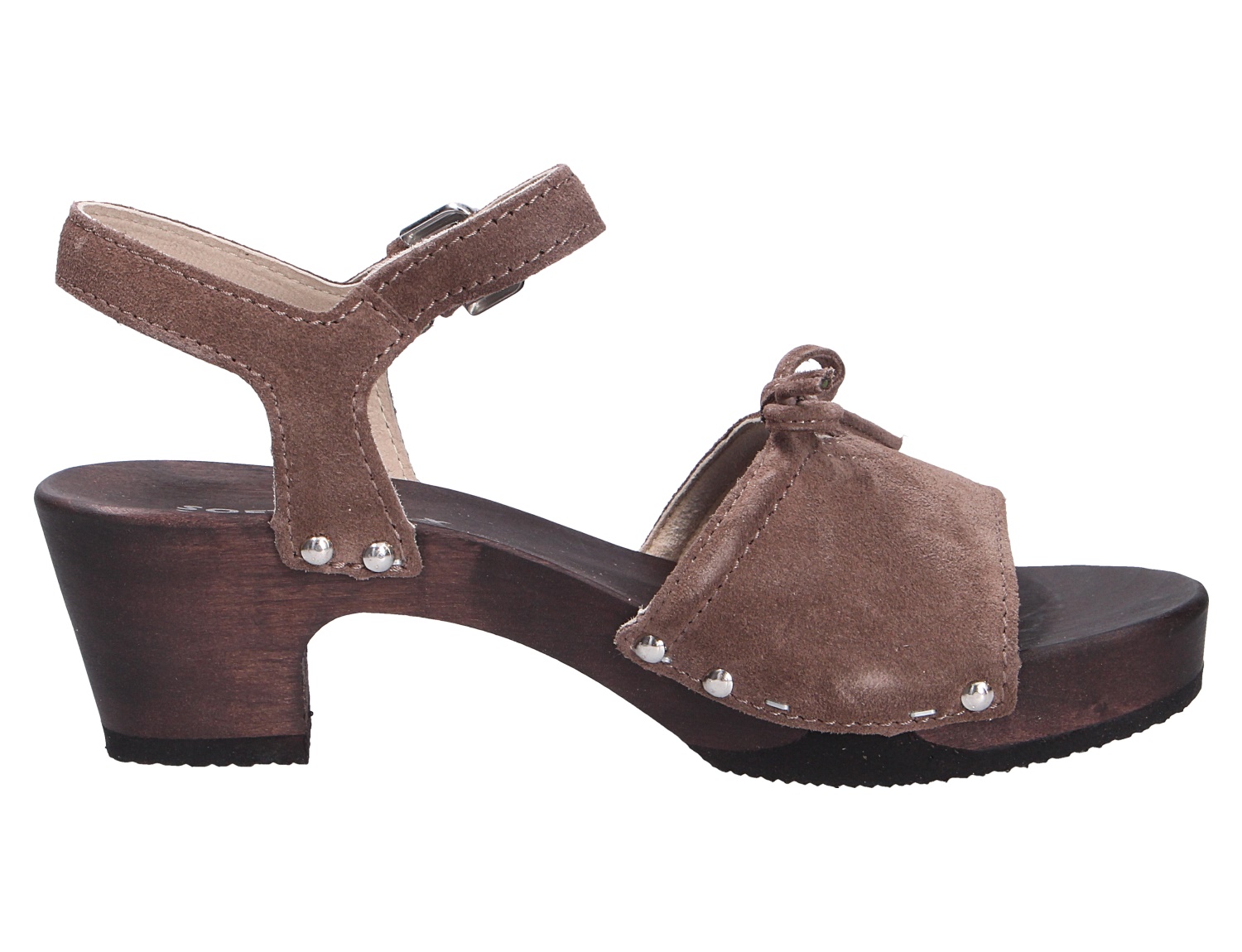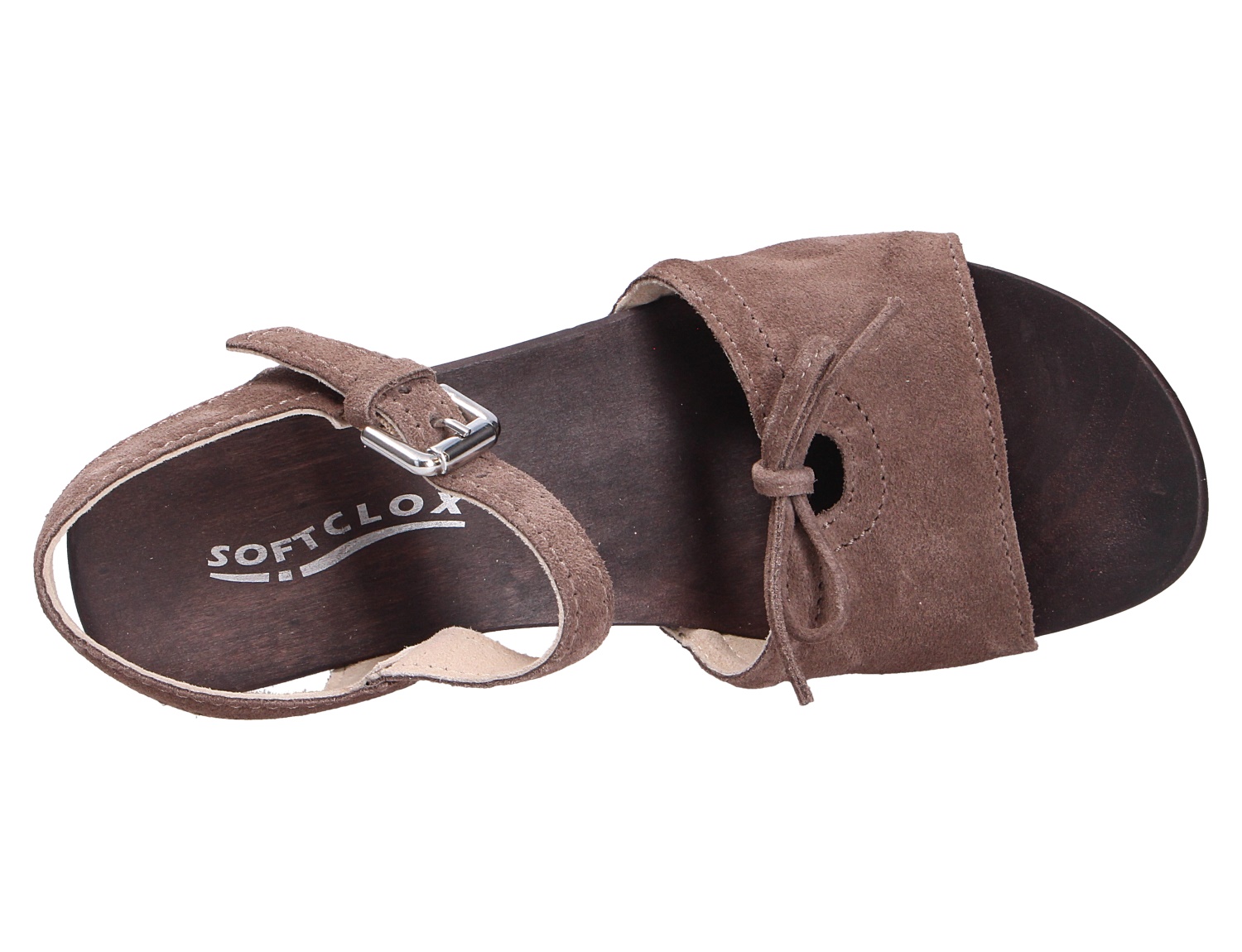 Schöne Damen Sandale aus dem Hause Softclox aus einem weichen Veloursleder.Diese Leder hat eine samtartige Oberfläche, ist sehr weiches und atmungsaktiv. Ebenso glänzt das Modell durch eine weiche Lederausstattung. Das Fußbett ist nicht auswechselbar. Die Schuhform ist ideal für normal weite Füße (Weite F). Der stabile Blockabsatz hat eine Höhe von cirka 4 cm ,die aus echtem Holz bestehend Laufsohle ist ein markantes Merkmal. Über eine Schließe läßt sich der Schuh bequem an- und ausziehen. Die Schuhgröße fällt regulär aus.