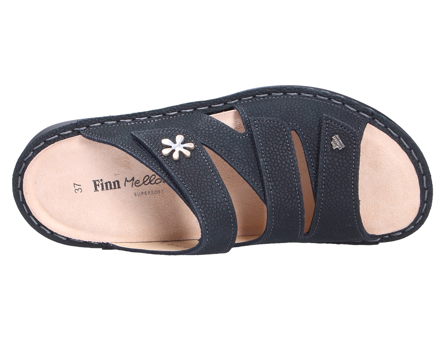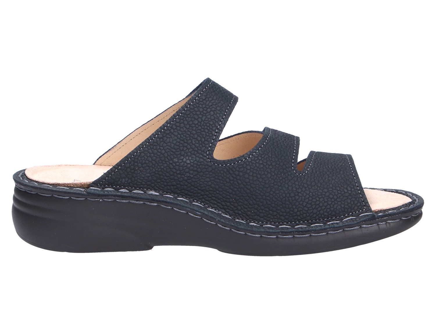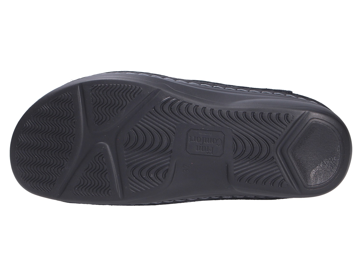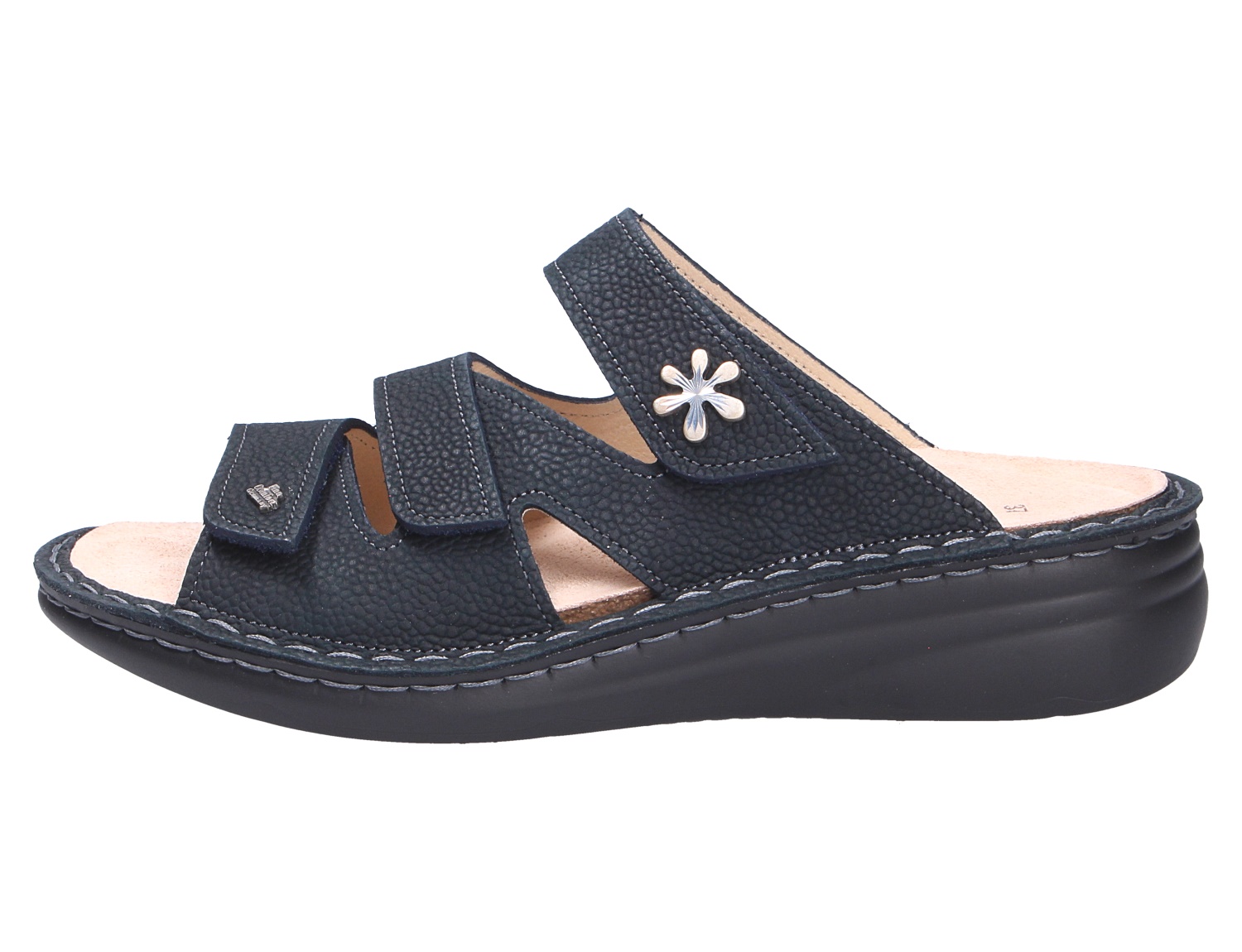 Luftig leichtes gehen mit Comfort die Pantolette GRENADA der Marke Finn Comfort Hier wird jeder Fuß verwöhnt. Durch das hochwertige Nubukleder ist das Obermaterial wunderbar anpassungsfähig. Die angeraute Oberfläche ist besonders weich und angenehm zu tragen. Das exzellente Innenleben aus bestem Leder gibt Ihnen ein erholsames Gefühl an langen Tagen. Die lederbezogene, gepolsterte Einlegesohle ist herausnehmbar.Somit können eigene Einlagen verwendet werden. Der Schnitt ist für breitere Füße (Weite H) geeignet. Der Keilabsatz hat eine Höhe von cirka 2 cm ,für gute Bodenhaftung sorgt die abriebfeste und griffige Gummisohle. Ein Klettverschluß zum einfachen und bequemen an- und ausziehen sorgt für einen guten Halt.Ebenfalls ist eine stufenlose Anpassung an den Fuß möglich. Die Schuhgröße fällt regulär aus.
