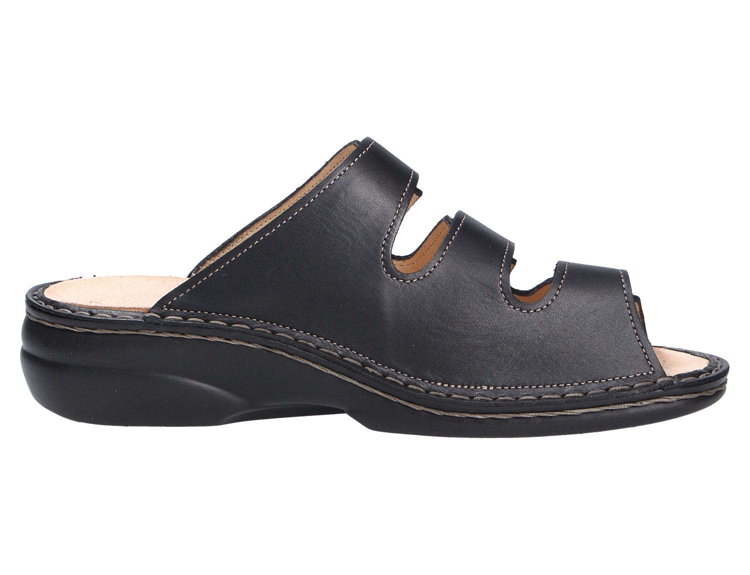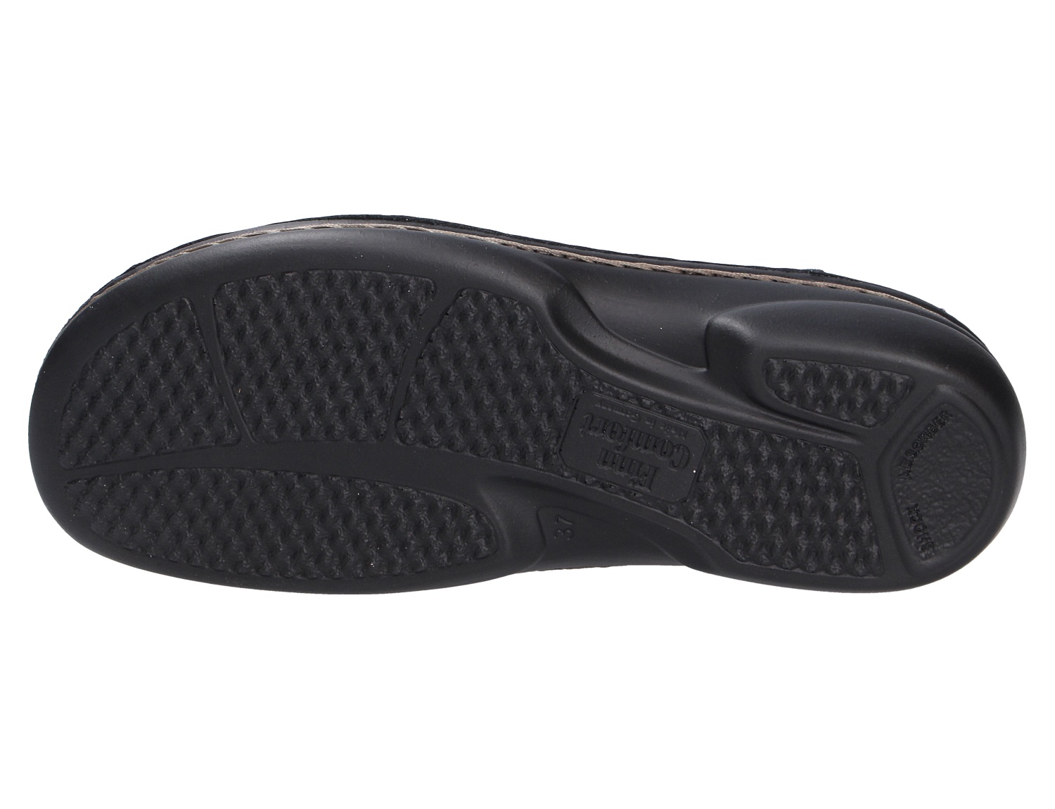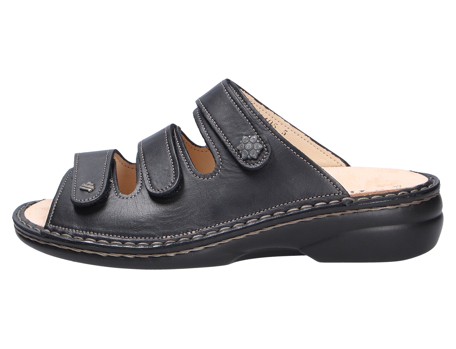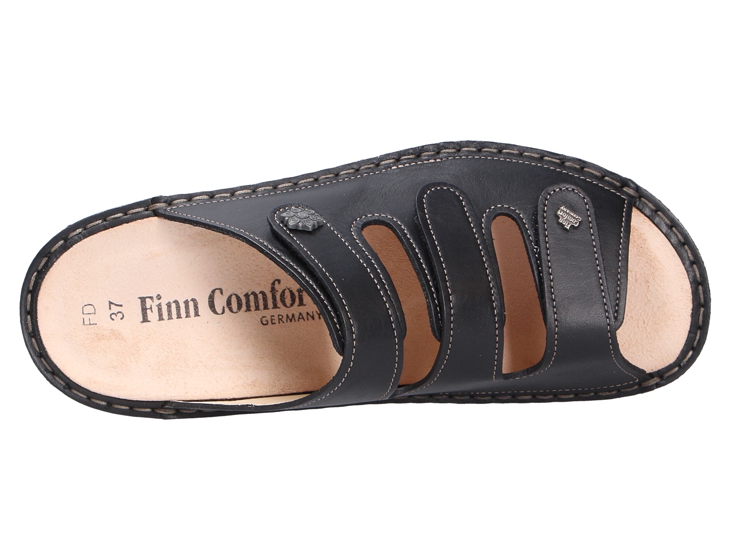 Luftig leichtes gehen mit Comfort die Pantolette MENORCA von Finn Comfort Hier wird jeder Fuß verwöhnt. Angenehm weich liegt das hochwertige Glattleder am Fuß und verleiht dem Schuh einen besonderen Look. Das exzellente Innenleben aus bestem Leder gibt Ihnen ein erholsames Gefühl an langen Tagen. Die lederbezogene, gepolsterte Einlegesohle ist herausnehmbar.Somit können eigene Einlagen verwendet werden. Der Schnitt ist für breitere Füße (Weite H) geeignet. Der Keilabsatz hat eine Höhe von cirka 2 cm ,für gute Bodenhaftung sorgt die abriebfeste und griffige Gummisohle. Klettverschlüsse halten den Schuh sicher am Fuß und sorgen auch für die individuelle und optimale Anpassung. Die Schuhgröße fällt groß aus - bitte eine ganze Größe kleiner bestellen.
