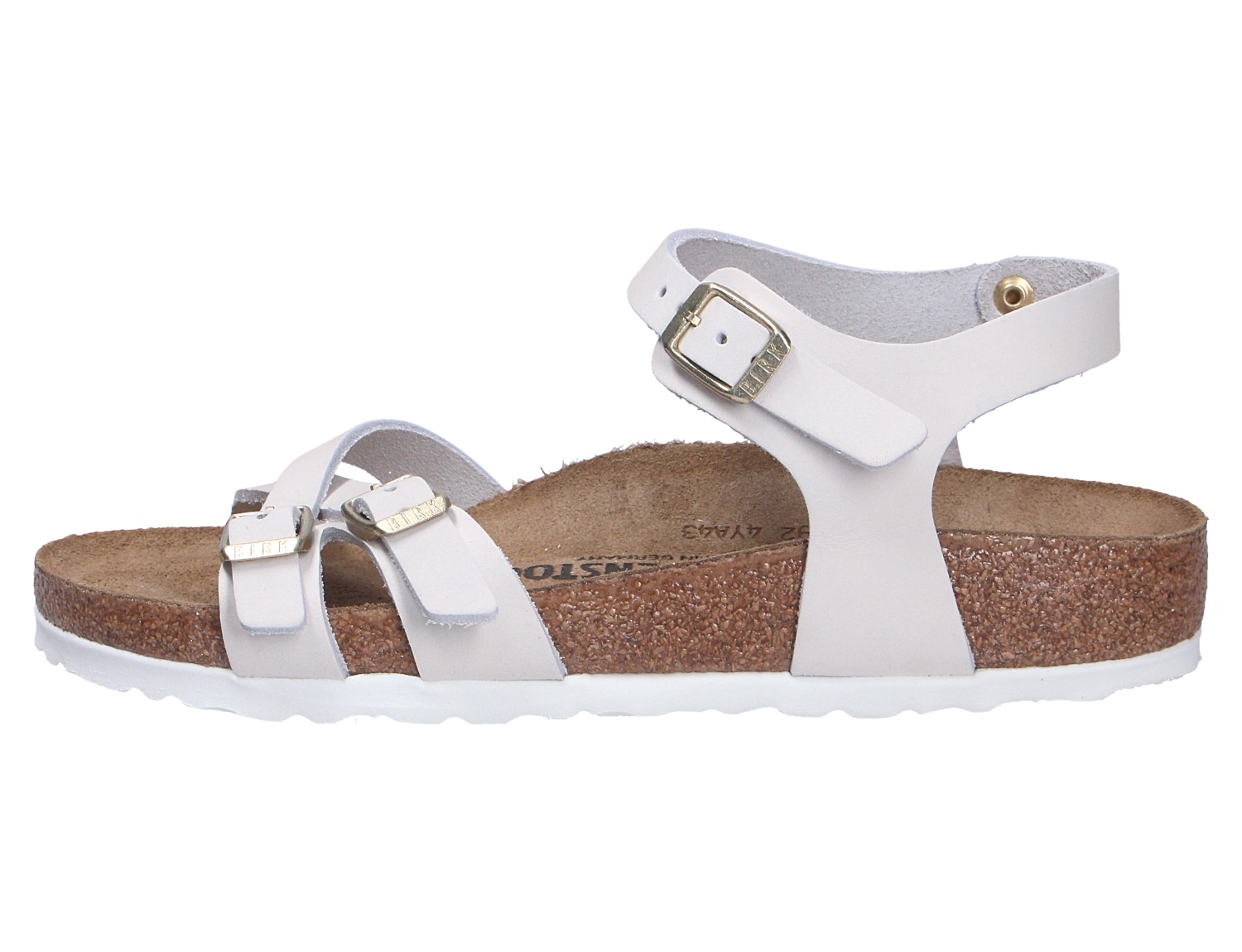 Da freut sich Ihr Fuß: Mit der Sandale KUMBA aus dem Hause Birkenstock Hier wird jeder Fuß verwöhnt. Angenehm weich liegt das hochwertige Glattleder am Fuß und verleiht dem Schuh einen besonderen Look. Das exzellente Innenleben aus bestem Leder gibt Ihnen ein erholsames Gefühl an langen Tagen. Das Original BIRKENSTOCK-Fußbett ist mit Leder bezogen und unterstützt mit seinen anatomischen Ausformungen Ihre Füße optimal bei der natürlichen Schrittabwicklung. Die Weite entspricht der schmalen Birkenstock Form und ist am Besten für normal breite Füße geeignet. Der Absatz ist durchgehend flach , Über eine Schließe läßt sich der Schuh bequem an- und ausziehen. Die Schuhgröße fällt regulär aus. BIRKENSTOCK ist noch bis heute ein Familienunternehmen, das Traditionen pflegt. BIRKENSTOCK steht für erstklassige Produkte, die mit viel Liebe zum Detail und einem hohen Anteil an Handarbeit sorgfältigst hergestellt werden.Grundsatz einer jeden BIRKENSTOCK Generation ist es, die Vorgaben der Natur als Maßstab zu betrachten, um die natürlichen Funktionen des Fußes zu fördern und zu erhalten.