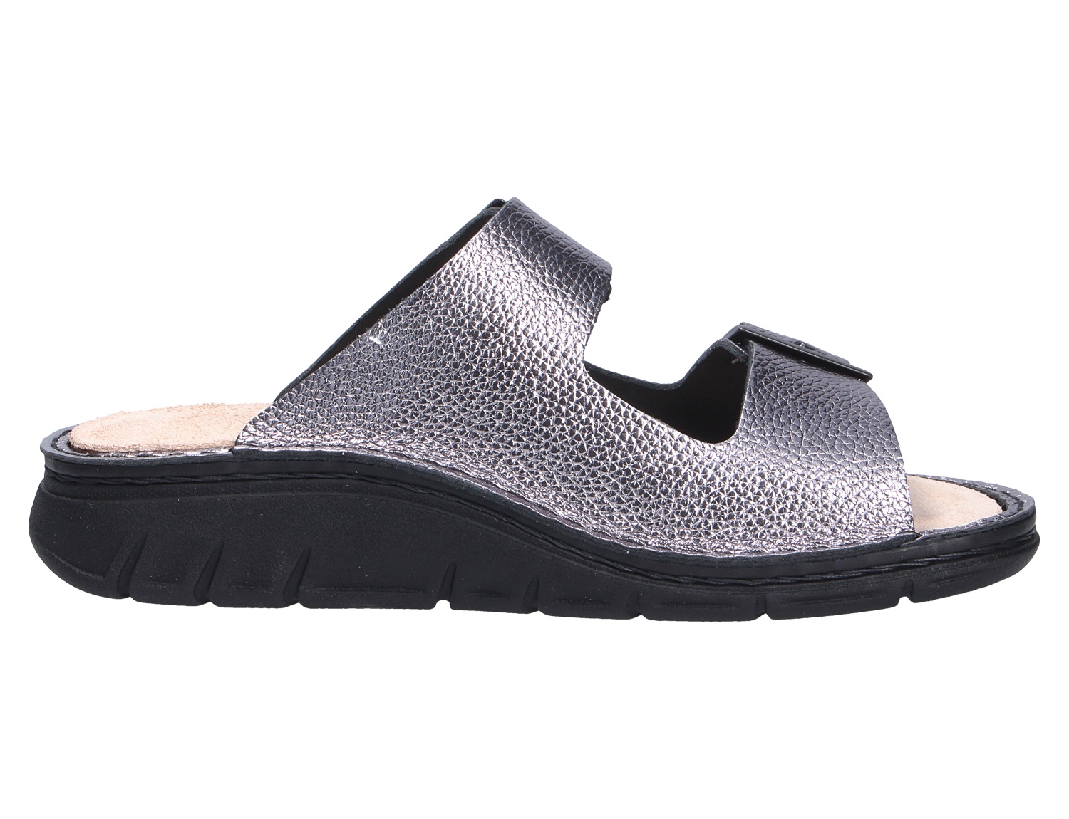 Luftig leichtes gehen mit Comfort die Pantolette CAYMAN-S aus dem Hause Finn Comfort Hier wird jeder Fuß verwöhnt. Angenehm weich liegt das hochwertige Glattleder am Fuß und verleiht dem Schuh einen besonderen Look. Ebenso glänzt das Modell durch eine weiche Lederausstattung. Die mit einem weichen Polster unterlegte lederbezogene Einlegesohle sorgt für ein angenehmes Fußklima, ist auswechselbar und somit für lose Einlagen geeignet. Auf diesen Schuh freuen sich besonders etwas breitere Füße:Die Weite H bietet hier ausreichend Platz. Der Keilabsatz hat eine Höhe von cirka 1 cm ,als Sohlenmaterial kommt ein griffiges und abriebarmes Gummi zum Einsatz. Über eine Schließe läßt sich der Schuh bequem an- und ausziehen. Die Schuhgröße fällt groß aus - bitte eine ganze Größe kleiner bestellen.
