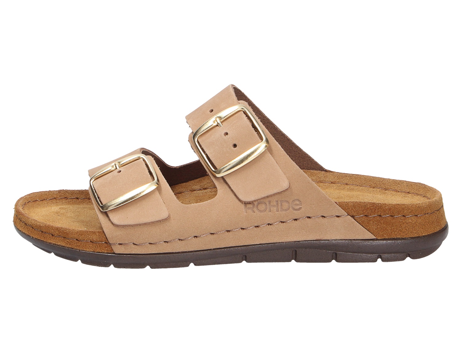 Luftig leichtes gehen mit Comfort die Pantolette EASYS N°42 aus dem Hause Rohde Hier wird jeder Fuß verwöhnt. Durch das hochwertige Nubukleder ist das Obermaterial wunderbar anpassungsfähig. Die angeraute Oberfläche ist besonders weich und angenehm zu tragen. Das exzellente Innenleben aus bestem Leder gibt Ihnen ein erholsames Gefühl an langen Tagen. Für gutes Fußklima sorgt die lederbezogene Decksohle. Geschnitten ist der Schuh für etwas breitere Füße (Weite G). Der Absatz ist durchgehend flach ,für gute Bodenhaftung sorgt die abriebfeste und griffige Gummisohle. Über eine Schließe läßt sich der Schuh bequem an- und ausziehen. Die Schuhgröße fällt regulär aus.