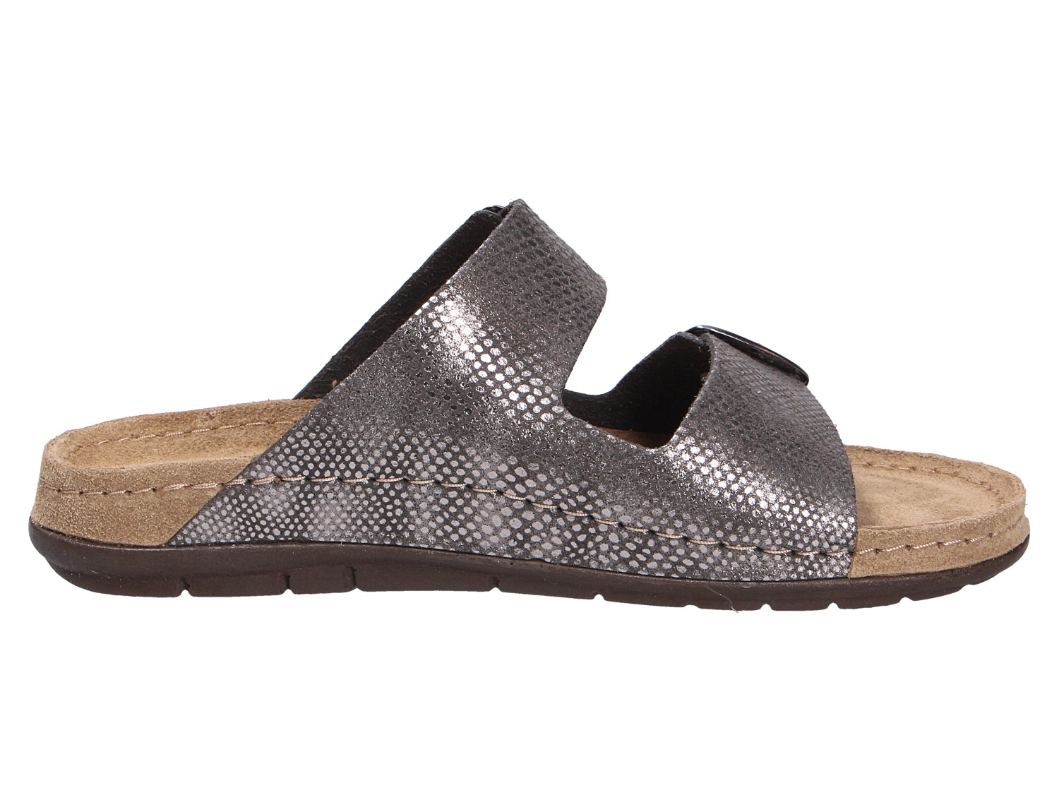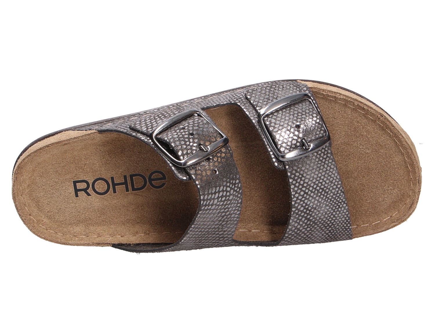 Luftig leichtes gehen mit Comfort die Pantolette EASYS N°42 aus dem Hause Rohde Hier wird jeder Fuß verwöhnt. Durch das hochwertige Nubukleder ist das Obermaterial wunderbar anpassungsfähig. Die angeraute Oberfläche ist besonders weich und angenehm zu tragen. Ebenso glänzt das Modell durch eine weiche Lederausstattung. Das Fußbett(nicht auswechselbar)ist mit Leder bezogen und sorgt für ein angenehmes Fußklima. Für etwas breite Füße ist dieses Modell(weite G) genau das richtige. Der Absatz ist durchgehend flach ,als Sohlenmaterial kommt ein griffiges und abriebarmes Gummi zum Einsatz. Über eine Schließe läßt sich der Schuh bequem an- und ausziehen. Die Schuhgröße fällt regulär aus.