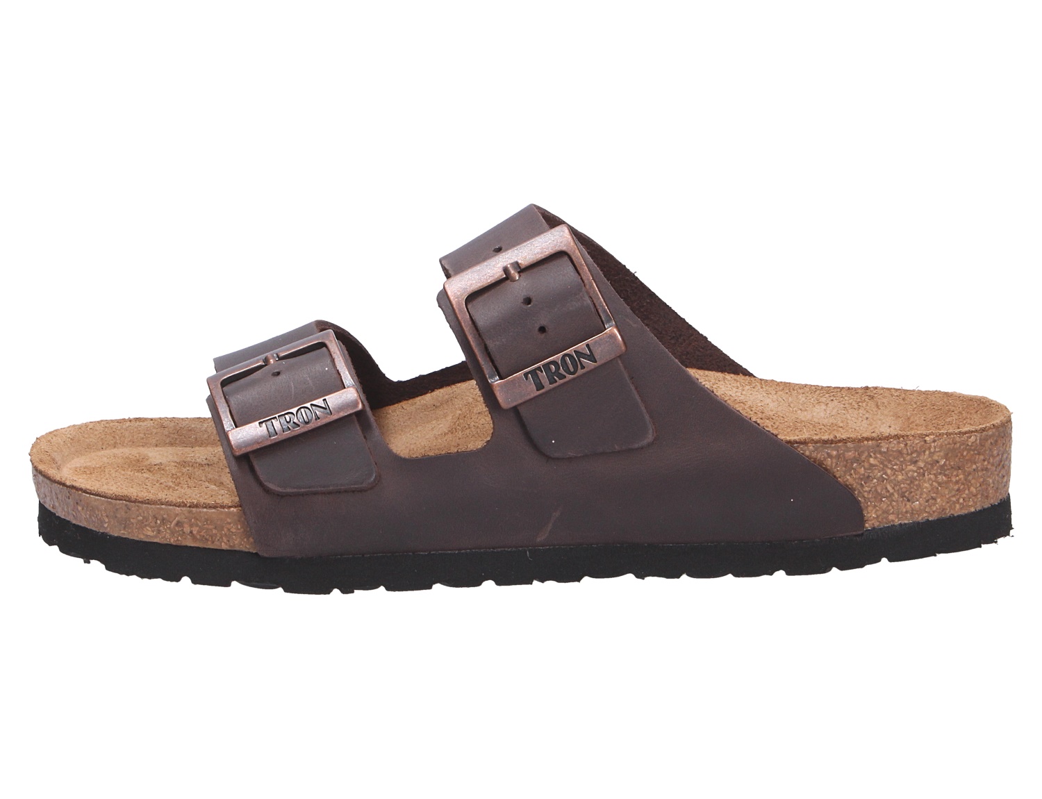 Den kennen alle Männer: Das Modell PAMPELONNE aus dem Hause TRON by Finn Comfort ist ein Klassiker unter den Pantoletten. Durch das hochwertige Nubukleder ist das Obermaterial wunderbar anpassungsfähig. Die angeraute Oberfläche ist besonders weich und angenehm zu tragen. Ebenso glänzt das Modell durch eine weiche Lederausstattung. Das Fußbett(nicht auswechselbar)ist mit Leder bezogen und sorgt für ein angenehmes Fußklima. Die Weite entspricht der normalen Birkenstock Form und ist für breite Füße die richtig Wahl. Der Absatz ist durchgehend flach , Über eine Schließe läßt sich der Schuh bequem an- und ausziehen. Die Schuhgröße fällt regulär aus.