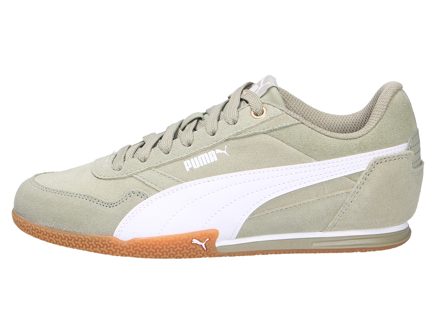 Modisch aktuell und top im Trend: Bei dem Modell BELLA DONNA SD von Puma stimmt einfach alles. Besonders das weiche Veloursleder schmeichelt jedem, hat eine samtartige Oberfläche und ist sehr atmungsaktiv. Innen ist der Schuh mit einem elastischen sowie atmungsaktiven Textil augestattet. Die weich gepolsterte textile Einlegesohle ist auswechselbar und schafft somit Platz für eigene Einlagen. Die Schuhform ist ideal für normal weite Füße (Weite F). Der Absatz ist durchgehend flach ,als Sohlenmaterial kommt ein griffiges und abriebarmes Gummi zum Einsatz. Ein klassischer Schnürverschluss rundet das Design ab und gibt Ihnen die Möglichkeit, die Passform des Schuhs zu optimieren. Durch die runde Schuhspitze wirkt der Schuh dezent am Fuß und bietet genügend Platz für die Fußzehen. Die Schuhgröße fällt klein aus - bitte eine halbe Größe größer bestellen.