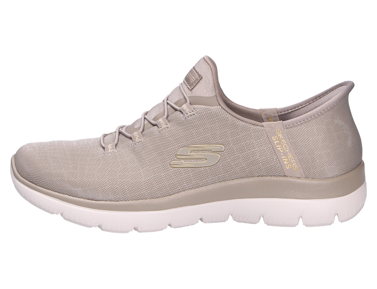 Als sportlicher Damenslipper ist der SUMMITS-CLASSY aus dem Hause Skechers für den Alltag die absolut richtige Wahl. Das Obermaterial ist aus einem feinen hochwertigem Synthetikmaterial. Auch die textile Innenverarbeitung überzeugt durch ihre angenehm weiche Beschaffenheit. Die aus Textil bestehende Decksohle bettet den Fuß angenehm. Geschnitten ist die Form für normal breite Füße (Weite F). Der Absatz ist durchgehend flach ,die aus einem weichen PU-Material bestehende Laufsohle schont die Gelenke und federt jeden Tritt optimal ab. Die karree-förmige Schuhform hat zwei Vorteile: Sie wirkt sportlich und bietet einen angenehmen Tragecomfort für den Fuß und die Fußzehen. Die Schuhgröße fällt regulär aus.