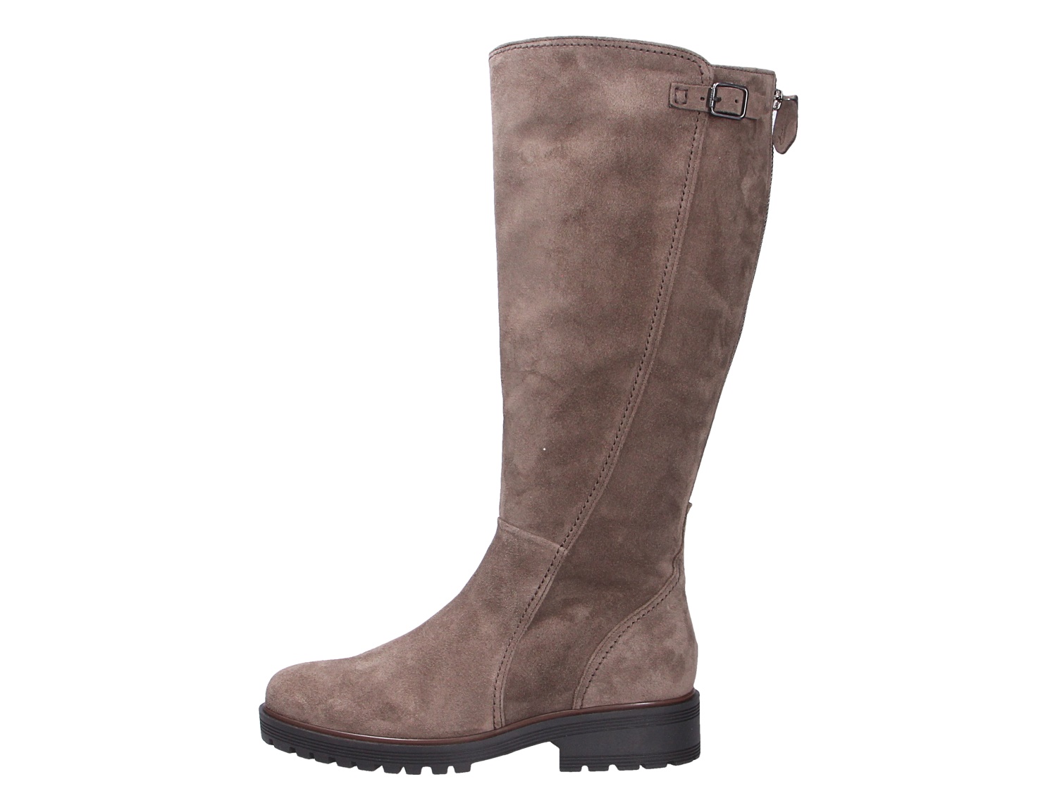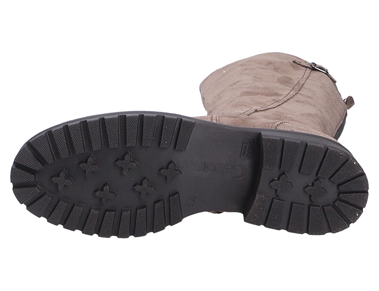 Chicer Damen Hochschaftstiefel aus dem Hause Gabor aus einem weichen Veloursleder.Diese Leder hat eine samtartige Oberfläche, ist sehr weiches und atmungsaktiv. Innen ist der Schuh mit einem elastischen sowie atmungsaktiven Textil augestattet. Die weich gepolsterte textile Einlegesohle ist auswechselbar und schafft somit Platz für eigene Einlagen. Die Schuhform ist ideal für normal weite Füße (Weite F). Der stabile Blockabsatz hat eine Höhe von cirka 1 cm ,als Sohlenmaterial kommt ein griffiges und abriebarmes Gummi zum Einsatz. Ein leichter Einstieg wird durch den innen liegenden Reißverschluss ermöglicht. Die medium Schaftweite passt sehr gut für alle normalweiten Waden. Durch die runde Schuhspitze wirkt der Schuh dezent am Fuß und bietet genügend Platz für die Fußzehen. Die Schuhgröße fällt regulär aus. GABOR ist führender Hersteller qualitativ hochwertiger, modischer Damenschuhe. Neben modischer Aktualität sind Passform und Verarbeitungsqualität die wesentlichen Merkmale des GABOR Markenschuhs.Die langjährige Erfahrung ist die Grundlage dessen, was das Unternehmen als Gabor-Qualität bezeichnet. Nur höchste Ansprüche an jedes Paar Schuhe haben Gabor zur Traditionsmarke werden lassen.