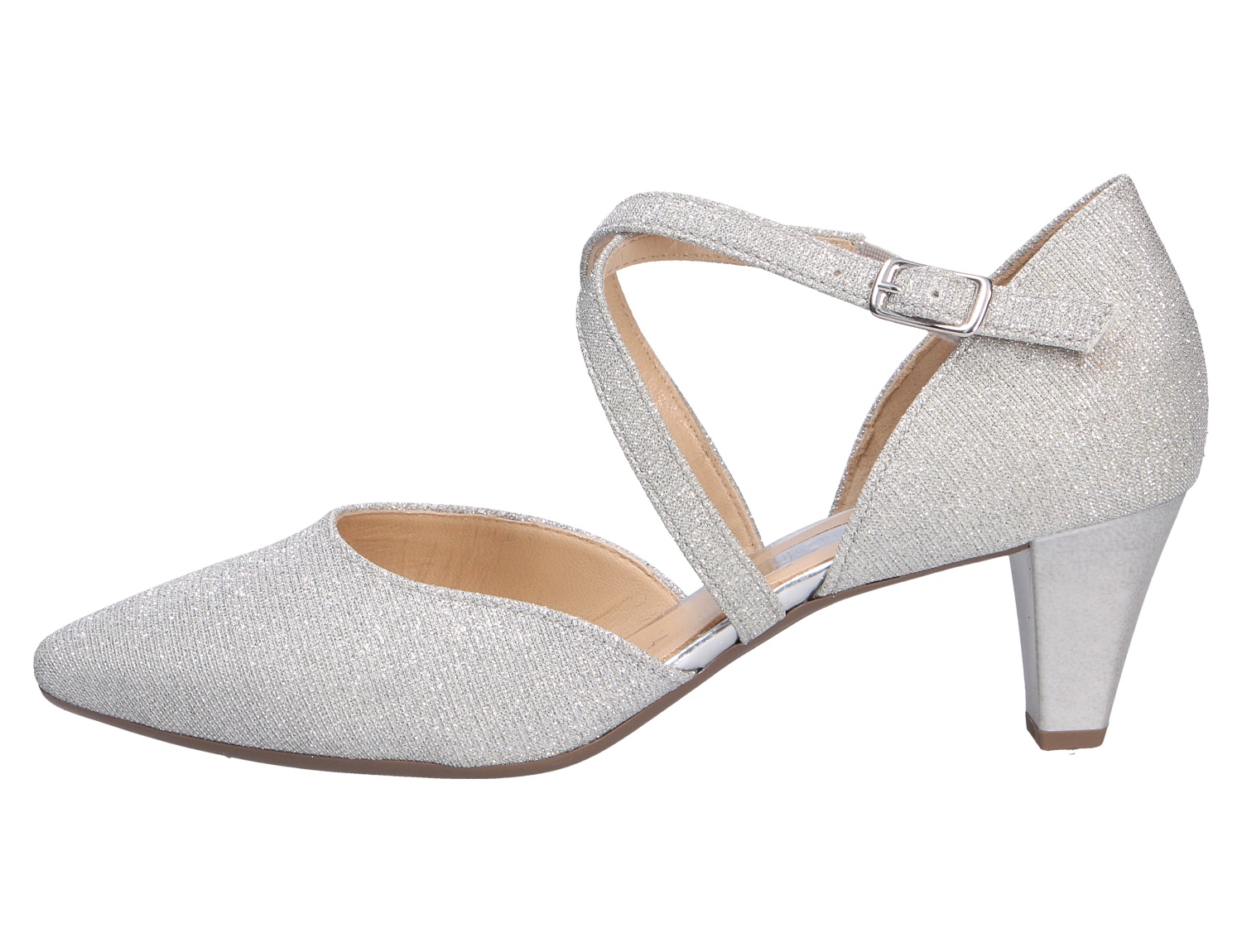 Chicer Damen Pumps der Marke Gabor aus einem feinen hochwertigem Synthetikmaterial. Das exzellente Innenleben aus bestem Leder gibt Ihnen ein erholsames Gefühl an langen Tagen. Für gutes Fußklima sorgt die lederbezogene Decksohle. Geschnitten ist die Form für normal breite Füße (Weite F). Der Trichterabsatz hat eine Höhe von cirka 5 cm ,für gute Bodenhaftung sorgt die abriebfeste und griffige Gummisohle. Anpassen an jede Fußform ist mit einer variablen Schnalle bequem möglich. Die spitze Form verleiht dem Schuh einen modischen, aktuellen Look. Der Schuh sieht dadurch schmaler und gleichzeitig elegant aus. Die Schuhgröße fällt regulär aus. GABOR ist führender Hersteller qualitativ hochwertiger, modischer Damenschuhe. Neben modischer Aktualität sind Passform und Verarbeitungsqualität die wesentlichen Merkmale des GABOR Markenschuhs.Die langjährige Erfahrung ist die Grundlage dessen, was das Unternehmen als Gabor-Qualität bezeichnet. Nur höchste Ansprüche an jedes Paar Schuhe haben Gabor zur Traditionsmarke werden lassen.