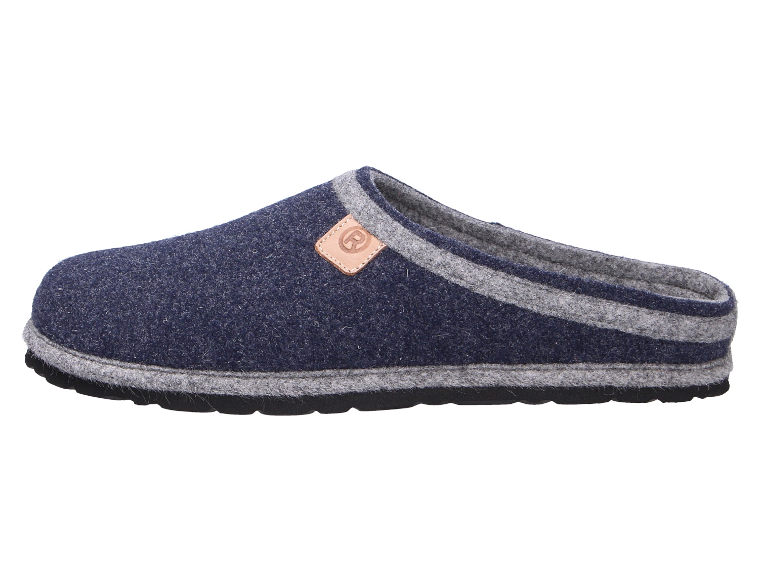 Für kühle Abende zu Hause ist der Herrenhausschuh H.MERAN aus dem Hause Rohde geradezu ideal. Innen ist der Schuh mit einem geschmeidigen Filz-Material ausgestattet. Es besteht zu einem hohen Anteil aus Schurwolle. Die weich gepolsterte textile Einlegesohle ist auswechselbar und schafft somit Platz für eigene Einlagen. Die Schuhform ist ideal für normal weite Füße (Weite F). Der Absatz ist durchgehend flach ,die aus einem weichen PU-Material bestehende Laufsohle schont die Gelenke und federt jeden Tritt optimal ab. Die karree-förmige Schuhform hat zwei Vorteile: Sie wirkt sportlich und bietet einen angenehmen Tragecomfort für den Fuß und die Fußzehen. Die Schuhgröße fällt regulär aus.