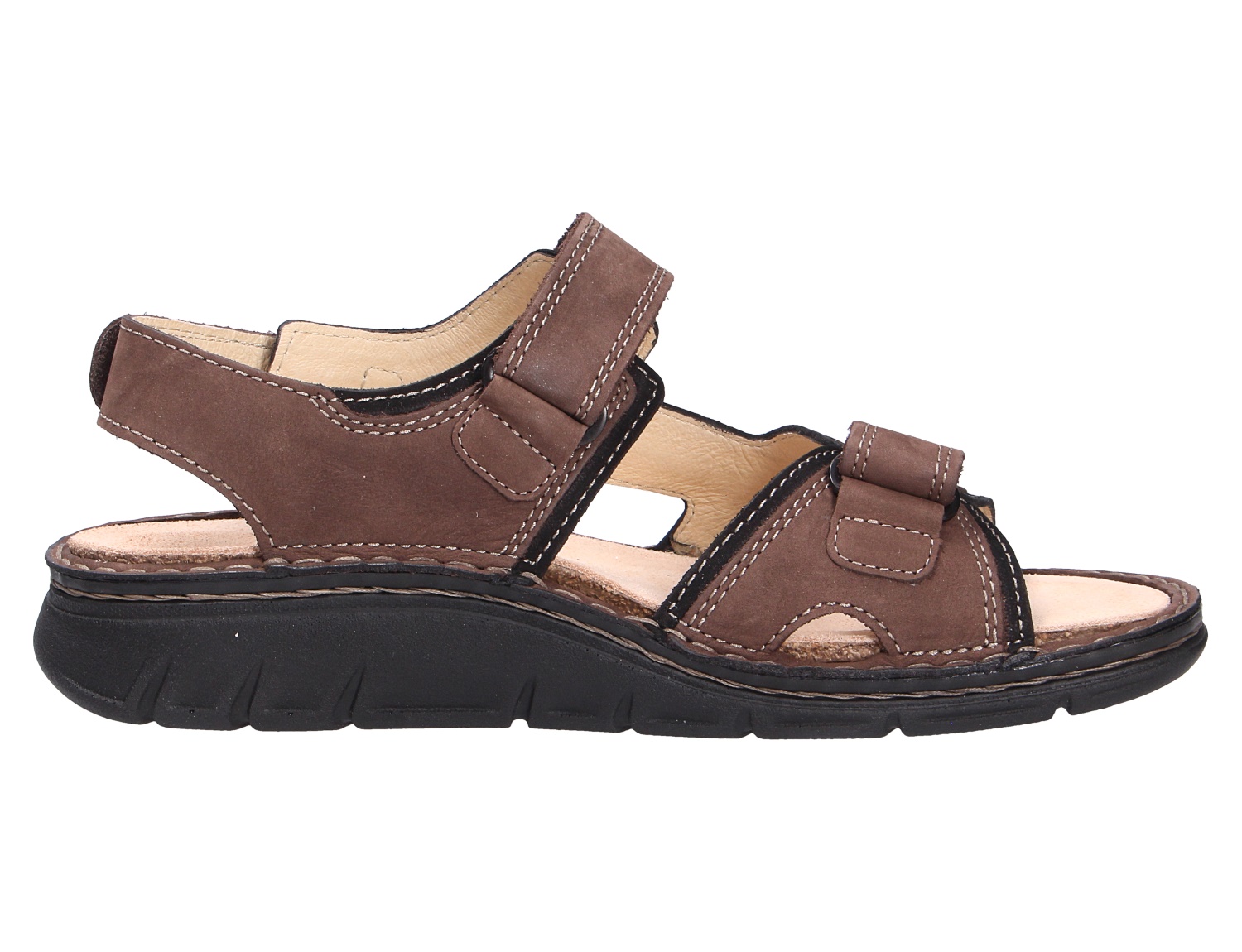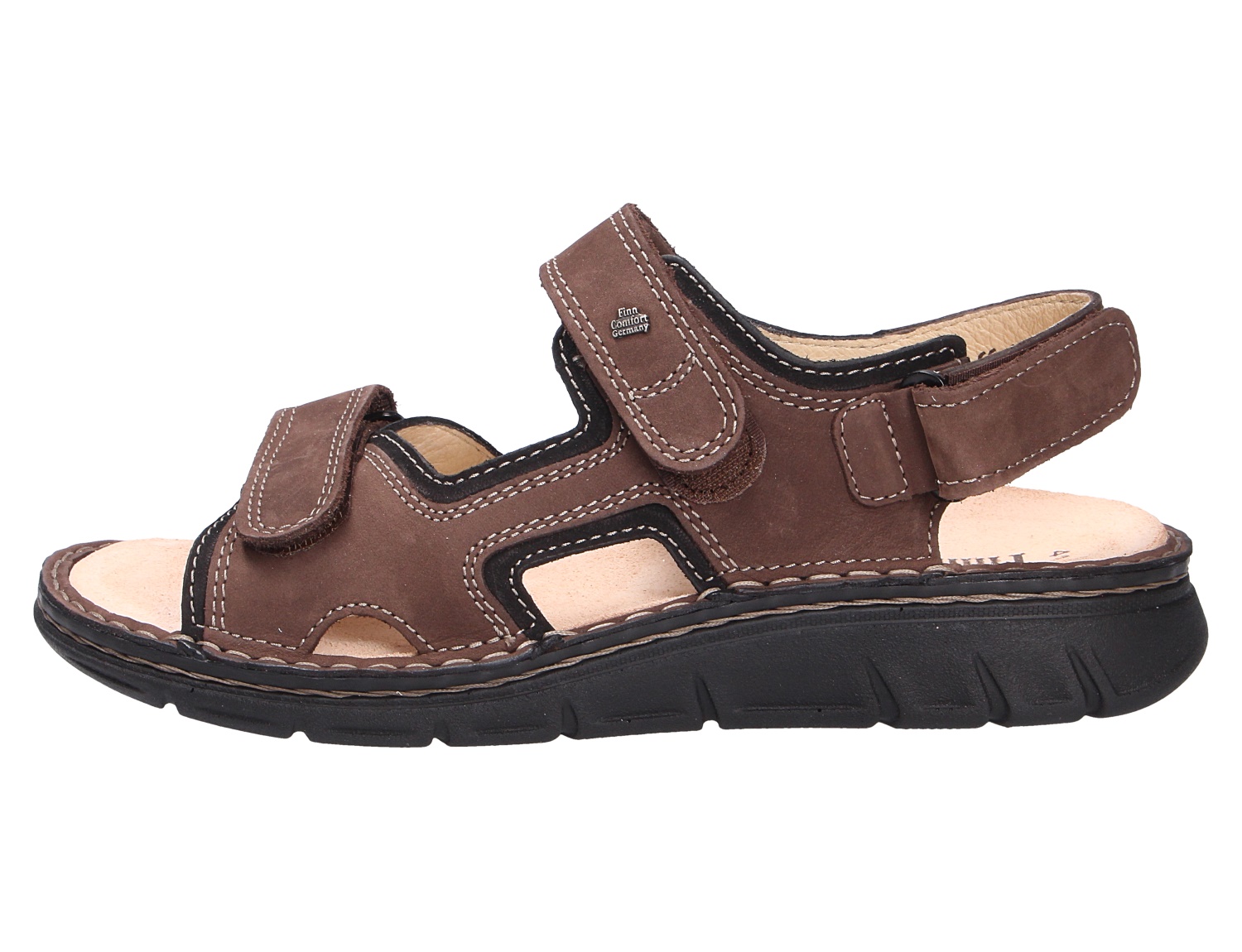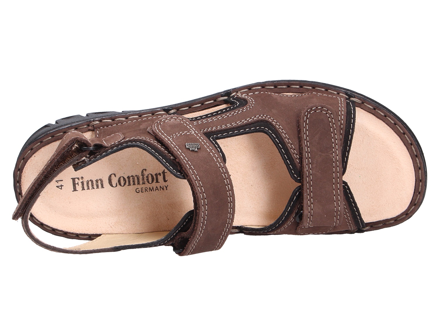 Die Rettung bei heissen Temperaturen: Die Herrensandale WANAKA der Marke Finn Comfort sorgt für die richtige Abkühlung. Durch das hochwertige Nubukleder ist das Obermaterial wunderbar anpassungsfähig. Die angeraute Oberfläche ist besonders weich und angenehm zu tragen. Das exzellente Innenleben aus bestem Leder gibt Ihnen ein erholsames Gefühl an langen Tagen. Die lederbezogene, gepolsterte Einlegesohle ist herausnehmbar.Somit können eigene Einlagen verwendet werden. Der Schnitt ist für breitere Füße (Weite H) geeignet. Der Keilabsatz hat eine Höhe von cirka 1 cm ,für gute Bodenhaftung sorgt die abriebfeste und griffige Gummisohle. Ein Klettverschluß zum einfachen und bequemen an- und ausziehen sorgt für einen guten Halt.Ebenfalls ist eine stufenlose Anpassung an den Fuß möglich. Die Schuhgröße fällt regulär aus.