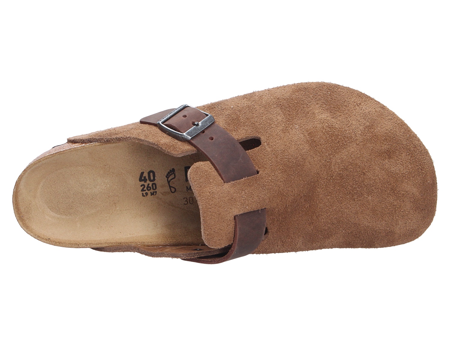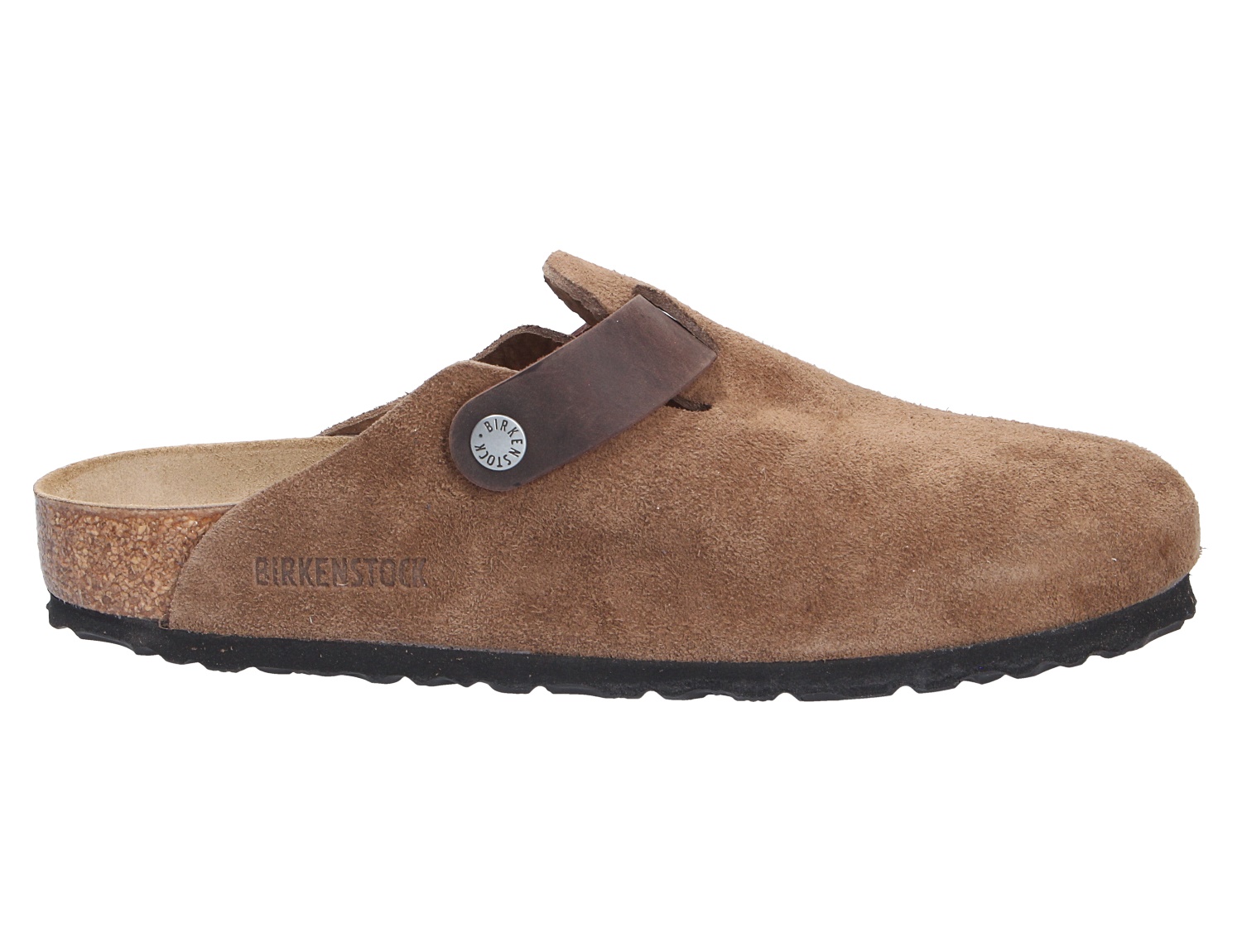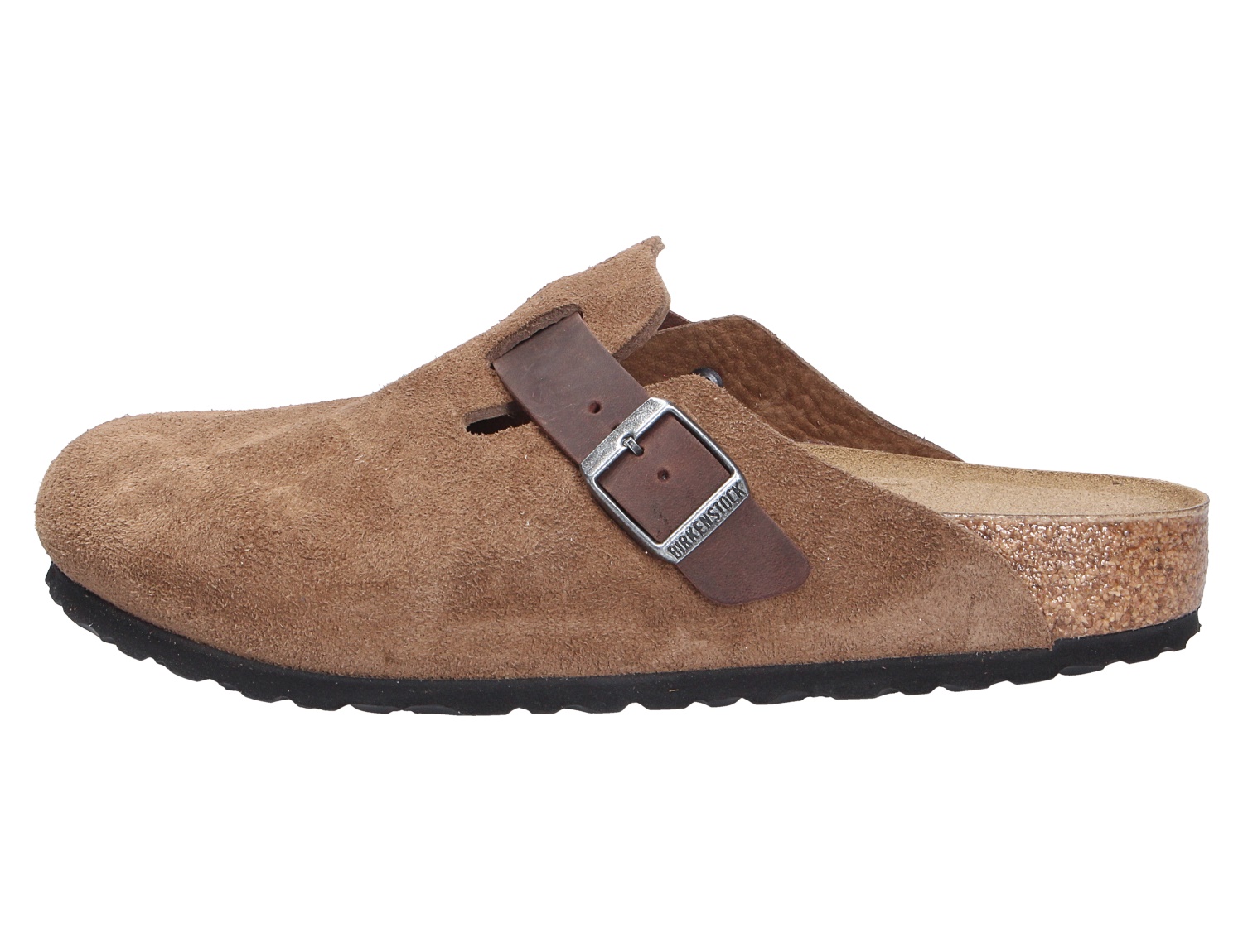 Den kennen alle Männer: Das Modell BOSTON der Marke Birkenstock ist ein Klassiker unter den Pantoletten. Besonders das weiche Veloursleder schmeichelt jedem, hat eine samtartige Oberfläche und ist sehr atmungsaktiv. Ebenso glänzt das Modell durch eine weiche Lederausstattung. Das Original BIRKENSTOCK-Fußbett ist mit Leder bezogen und unterstützt mit seinen anatomischen Ausformungen Ihre Füße optimal bei der natürlichen Schrittabwicklung. Die Weite entspricht der normalen Birkenstock Form und ist für breite Füße die richtig Wahl. Der Absatz ist durchgehend flach , Anpassen an jede Fußform ist mit einer variablen Schnalle bequem möglich. Die Schuhgröße fällt regulär aus. BIRKENSTOCK ist noch bis heute ein Familienunternehmen, das Traditionen pflegt. BIRKENSTOCK steht für erstklassige Produkte, die mit viel Liebe zum Detail und einem hohen Anteil an Handarbeit sorgfältigst hergestellt werden.Grundsatz einer jeden BIRKENSTOCK Generation ist es, die Vorgaben der Natur als Maßstab zu betrachten, um die natürlichen Funktionen des Fußes zu fördern und zu erhalten.