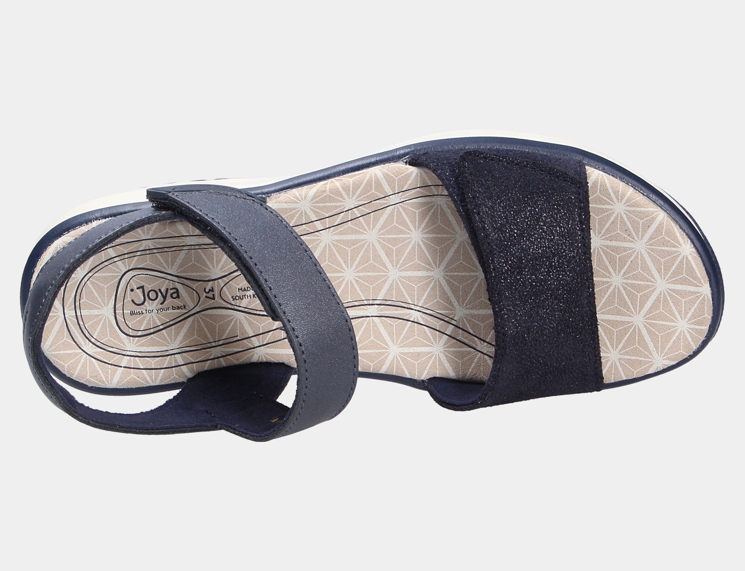 Da freut sich Ihr Fuß: Mit der Sandale FLORES DARK BLUE von JOYA wird laufen zum Vergnügen. Angenehm weich liegt das hochwertige Glattleder am Fuß und verleiht dem Schuh einen besonderen Look. Innen ist der Schuh mit einem elastischen sowie atmungsaktiven Textil augestattet. Das Fußbett ist aus Textil und nicht auswechselbar. Auf diesen Schuh freuen sich besonders etwas breitere Füße:Die Weite H bietet hier ausreichend Platz. Der Absatz ist durchgehend flach ,die Sohlenkategorie emotion steht für Freude am Stehen und Gehen.Die weich-elastische Joya Sohle dämpft jeden Stoß ab und unterstützt dadurch effektiv die Entlastung von Rücken und Gelenken. Das Ergebnis: ein einzigartiger Gehkomfort. Ideal für Menschen, die sich und ihre Füße mit einem einzigartig weichen Geh-Gefühl verwöhnen wollen.Kennzeichen der emotion-Active Technologie ist die besonders breite Sohle im Fersen- und Vorfußbereich um Weichheit mit Stabilität optimal zu kombinieren. Wichtig ist diese Stabilität vor allem im Arbeits- und Outdoorbereich.Besonders geeignet für den sportiven Lifestyle und Anwendungsbereiche in Beruf und Freizeit wo die körperliche Entlastung beim Gehen und Stehen wichtig ist. Klettverschlüsse halten den Schuh sicher am Fuß und sorgen auch für die individuelle und optimale Anpassung. Die Schuhgröße fällt regulär aus.