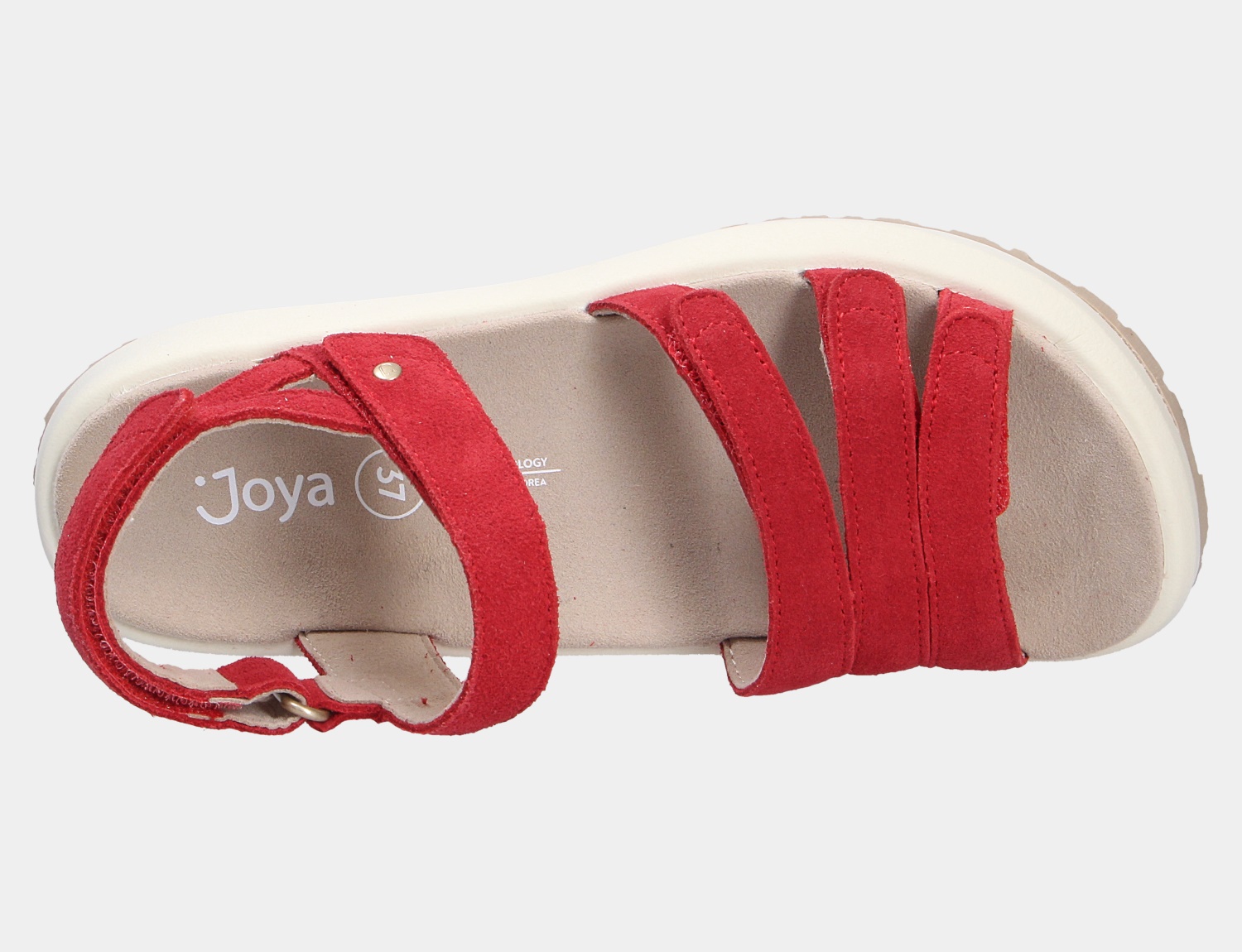 Da freut sich Ihr Fuß: Mit der Sandale MERIDA RED von JOYA wird laufen zum Vergnügen. Besonders das weiche Veloursleder schmeichelt jedem, hat eine samtartige Oberfläche und ist sehr atmungsaktiv. Auch die textile Innenverarbeitung überzeugt durch ihre angenehm weiche Beschaffenheit. Die aus Textil bestehende Decksohle bettet den Fuß angenehm. Der Schnitt ist für breitere Füße (Weite H) geeignet. Der Absatz ist durchgehend flach ,die Sohlenkategorie emotion steht für Freude am Stehen und Gehen.Die weich-elastische Joya Sohle dämpft jeden Stoß ab und unterstützt dadurch effektiv die Entlastung von Rücken und Gelenken. Das Ergebnis: ein einzigartiger Gehkomfort. Ideal für Menschen, die sich und ihre Füße mit einem einzigartig weichen Geh-Gefühl verwöhnen wollen.Kennzeichen der emotion-Active Technologie ist die besonders breite Sohle im Fersen- und Vorfußbereich um Weichheit mit Stabilität optimal zu kombinieren. Wichtig ist diese Stabilität vor allem im Arbeits- und Outdoorbereich.Besonders geeignet für den sportiven Lifestyle und Anwendungsbereiche in Beruf und Freizeit wo die körperliche Entlastung beim Gehen und Stehen wichtig ist. Klettverschlüsse halten den Schuh sicher am Fuß und sorgen auch für die individuelle und optimale Anpassung. Die Schuhgröße fällt regulär aus.