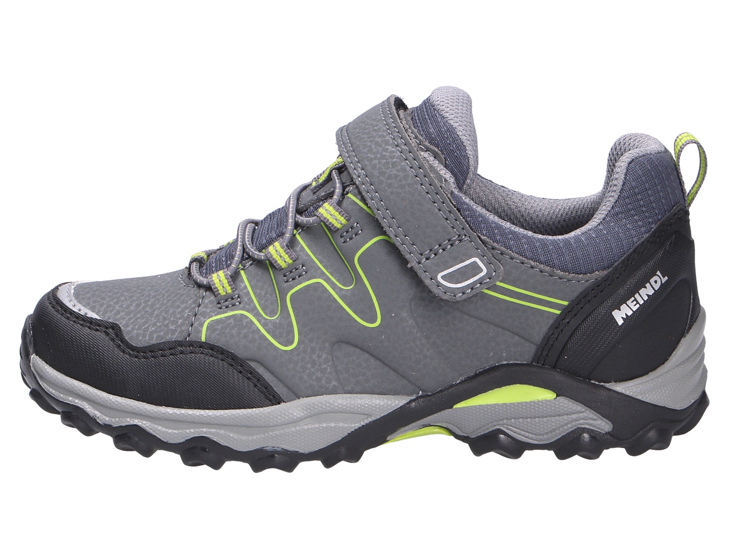 Flotter Jungen Halbschuh der Marke Meindl aus einem feinen hochwertigem Synthetikmaterial. Innen ist der Schuh mit einem elastischen sowie atmungsaktiven Textil augestattet. Die weich gepolsterte textile Einlegesohle ist auswechselbar und schafft somit Platz für eigene Einlagen. Die Schuhform wurde nach dem WMS-Weitensystem entwickelt und hat die WMS-Weite M.Dies garaniert optimale Passfom für die "kleinen" Füße. Der Absatz ist durchgehend flach ,als Sohlenmaterial kommt ein griffiges und abriebarmes Gummi zum Einsatz. Ein Klettverschluß zum einfachen und bequemen an- und ausziehen sorgt für einen guten Halt.Ebenfalls ist eine stufenlose Anpassung an den Fuß möglich. Durch die runde Schuhspitze wirkt der Schuh dezent am Fuß und bietet genügend Platz für die Fußzehen. Die Schuhgröße fällt regulär aus. Eine wasserabweisende Membrane sorgt für einen zuverlässigen Wetterschutz.