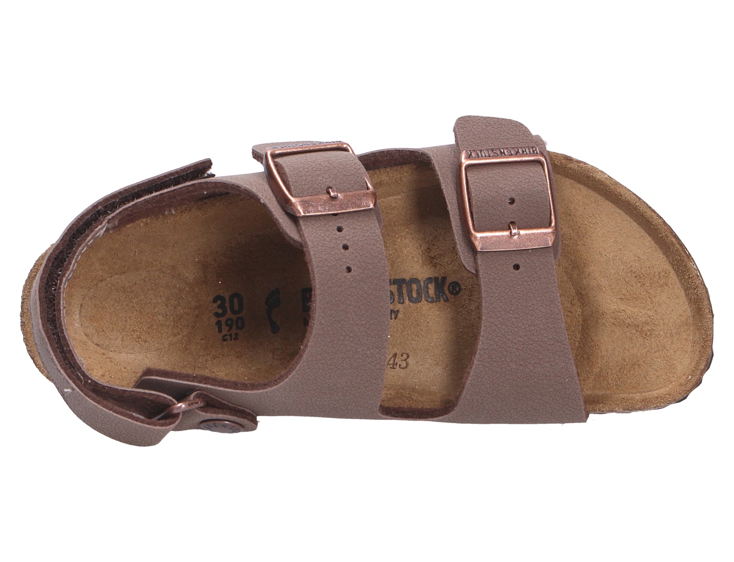 Sandale für die Kinder gesucht? Das Modell MILANO AS KIDS der Marke Birkenstock ist da genau die richtige. Aussen besteht der Schuh aus einem hochwertigen Birko-Flor Material dessen Look wie aus Leder gefertigt wirkt, und auf der Innenseite angenehm weich zu tragen ist. Auch die textile Innenverarbeitung überzeugt durch ihre angenehm weiche Beschaffenheit. Das Original BIRKENSTOCK-Fußbett ist mit Leder bezogen und unterstützt mit seinen anatomischen Ausformungen Ihre Füße optimal bei der natürlichen Schrittabwicklung. Die Weite entspricht der schmalen Birkenstock Form und ist am Besten für normal breite Füße geeignet. Der Absatz ist durchgehend flach , Anpassen an jede Fußform ist mit einer variablen Schnalle bequem möglich. Die Schuhgröße fällt regulär aus. BIRKENSTOCK ist noch bis heute ein Familienunternehmen, das Traditionen pflegt. BIRKENSTOCK steht für erstklassige Produkte, die mit viel Liebe zum Detail und einem hohen Anteil an Handarbeit sorgfältigst hergestellt werden.Grundsatz einer jeden BIRKENSTOCK Generation ist es, die Vorgaben der Natur als Maßstab zu betrachten, um die natürlichen Funktionen des Fußes zu fördern und zu erhalten.
