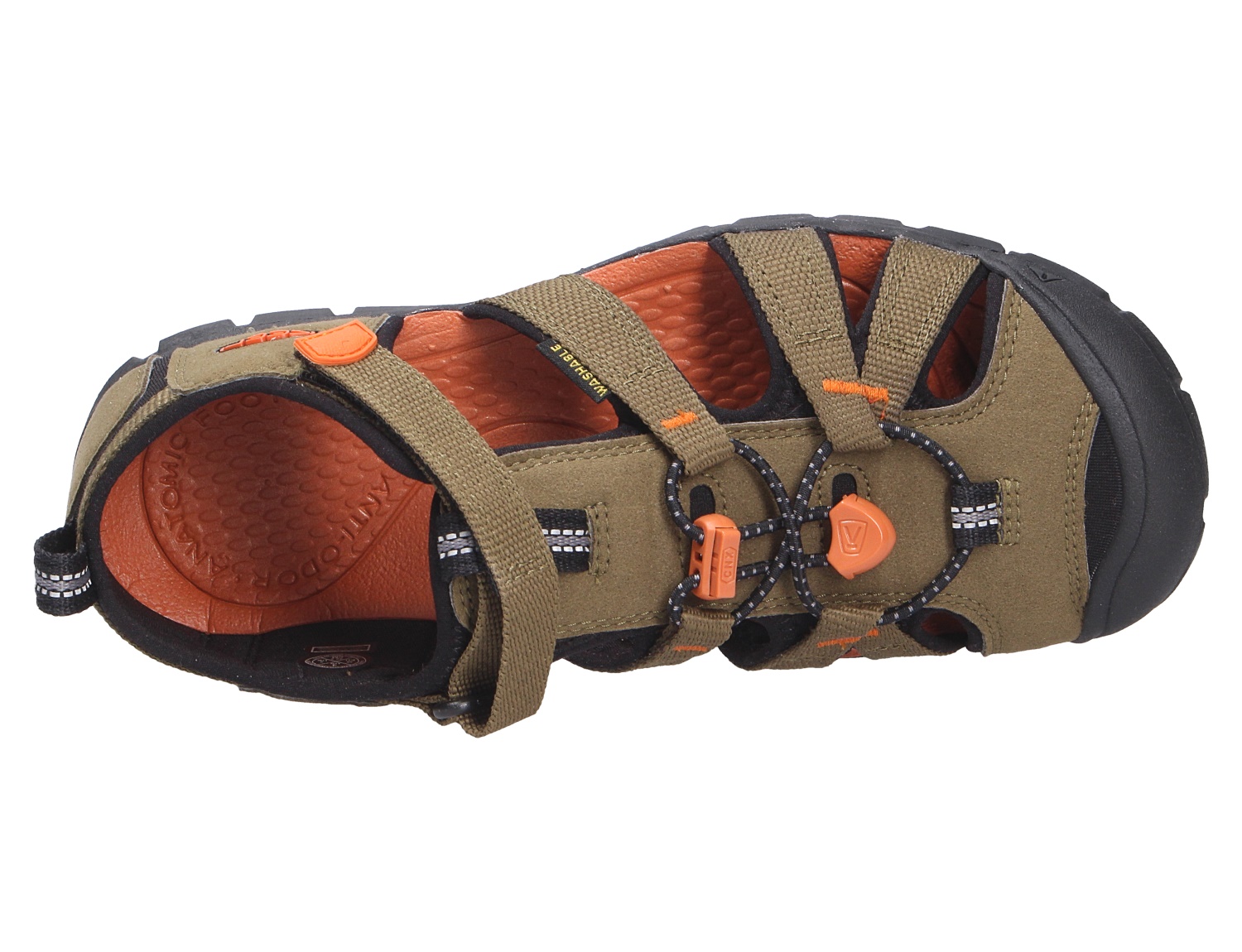Sportive Jungensandale von Keen aus einem feinen hochwertigem Synthetikmaterial. Innen ist der Schuh mit einem elastischen sowie atmungsaktiven Textil augestattet. Das Fußbett ist nicht auswechselbar. Die Schuhform ist ideal für normal weite Füße (Weite F). Der Absatz ist durchgehend flach ,als Sohlenmaterial kommt ein griffiges und abriebarmes Gummi zum Einsatz. Klettverschlüsse halten den Schuh sicher am Fuß und sorgen auch für die individuelle und optimale Anpassung. Die karree-förmige Schuhform hat zwei Vorteile: Sie wirkt sportlich und bietet einen angenehmen Tragecomfort für den Fuß und die Fußzehen. Die Schuhgröße fällt regulär aus.
