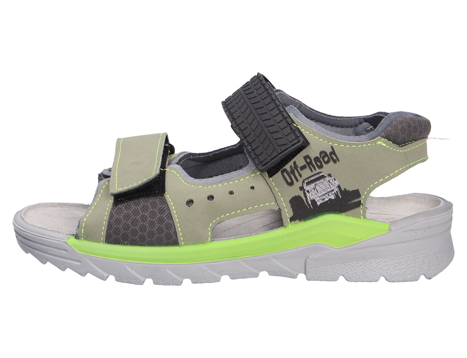 Für die wilden Jungs ist der ROAD der Marke Ricosta eine robuste Sandale die (fast) alles mitmacht. Das Obermaterial ist aus einem feinen hochwertigem Synthetikmaterial. Auch die textile Innenverarbeitung überzeugt durch ihre angenehm weiche Beschaffenheit. Für gutes Fußklima sorgt die lederbezogene Decksohle. Die Schuhform wurde nach dem WMS-Weitensystem entwickelt und hat die WMS-Weite M. Der Absatz ist durchgehend flach ,die aus einem weichen PU-Material bestehende Laufsohle schont die Gelenke und federt jeden Tritt optimal ab. Ein Klettverschluß zum einfachen und bequemen an- und ausziehen sorgt für einen guten Halt.Ebenfalls ist eine stufenlose Anpassung an den Fuß möglich. Die Schuhgröße fällt regulär aus.
