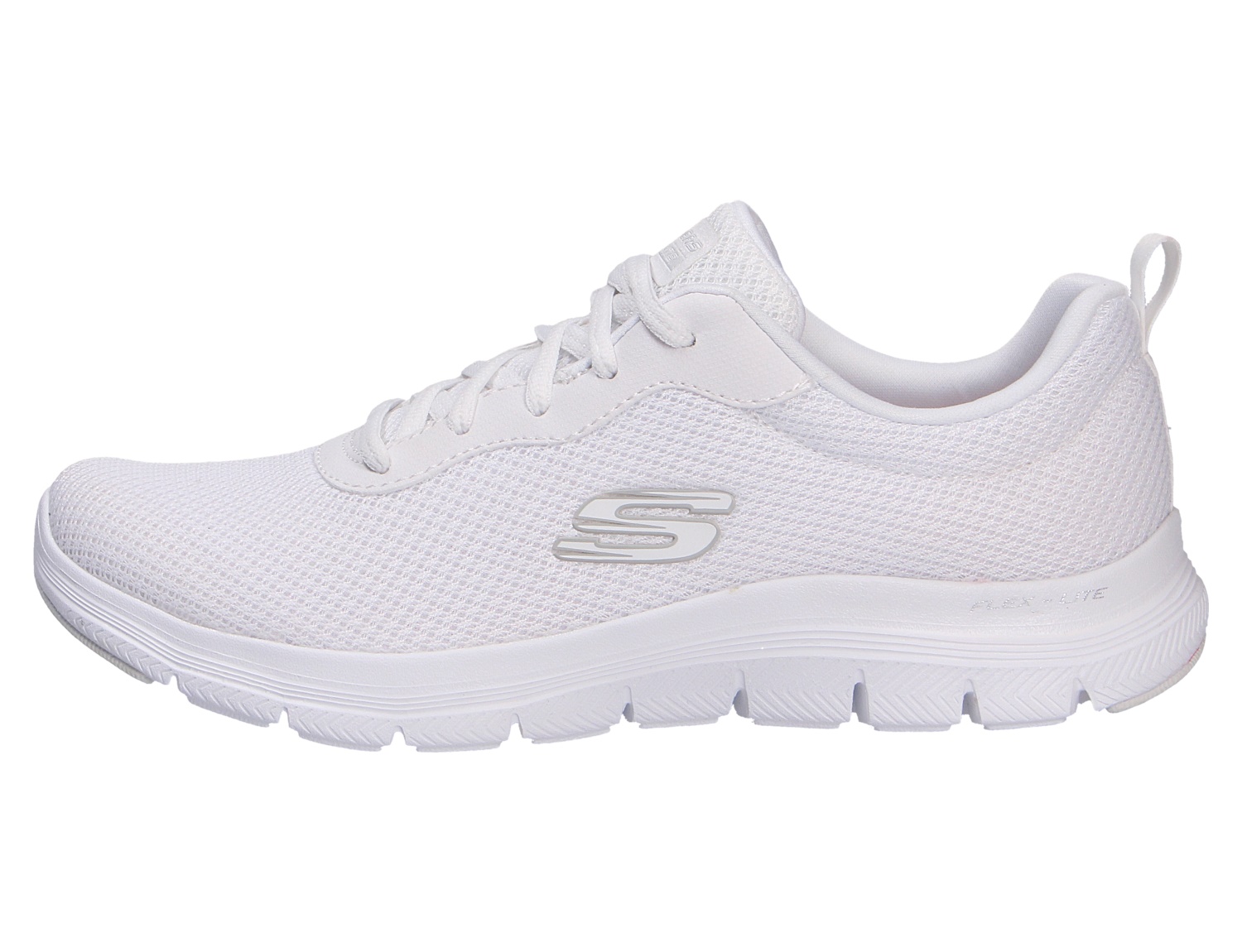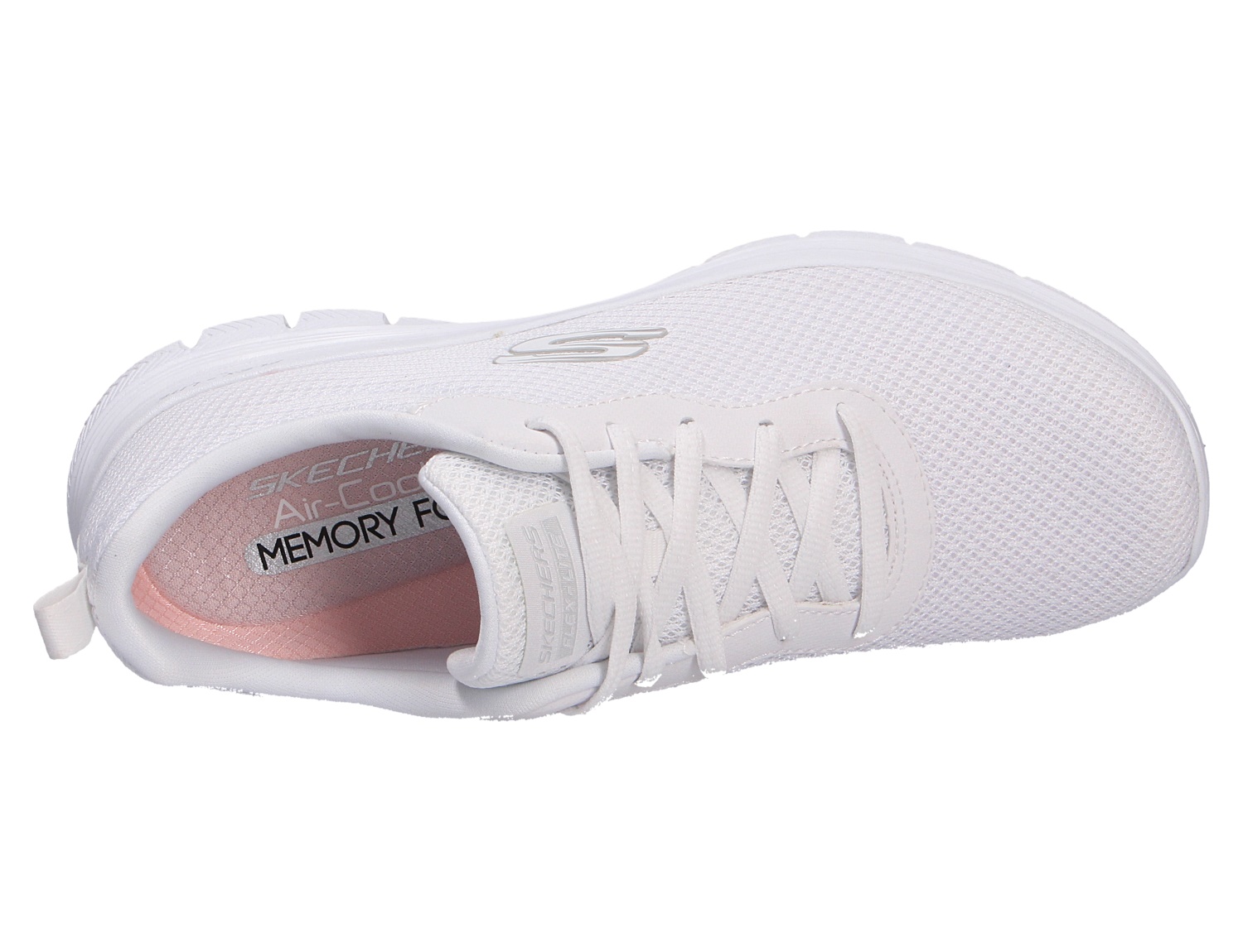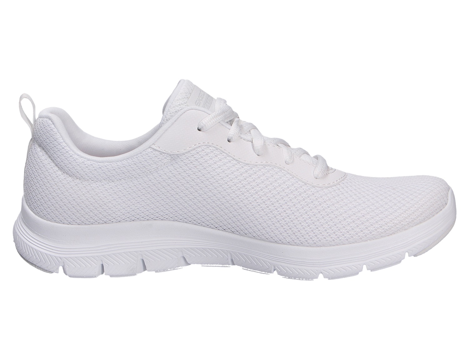 Modisch aktuell und top im Trend: Bei dem Modell FLEX APPEAL von Skechers stimmt einfach alles. Oben besteht der Schuh aus einem weichen Textil. Auch die textile Innenverarbeitung überzeugt durch ihre angenehm weiche Beschaffenheit. Durch die auswechselbare Decksohle ist es möglich, eigene Einlagen zu verwenden. Geschnitten ist die Form für normal breite Füße (Weite F). Der Absatz ist durchgehend flach ,die aus einem weichen PU-Material bestehende Laufsohle schont die Gelenke und federt jeden Tritt optimal ab. Ein klassischer Schnürverschluss rundet das Design ab und gibt Ihnen die Möglichkeit, die Passform des Schuhs zu optimieren. Die karree-förmige Schuhform hat zwei Vorteile: Sie wirkt sportlich und bietet einen angenehmen Tragecomfort für den Fuß und die Fußzehen. Die Schuhgröße fällt regulär aus.